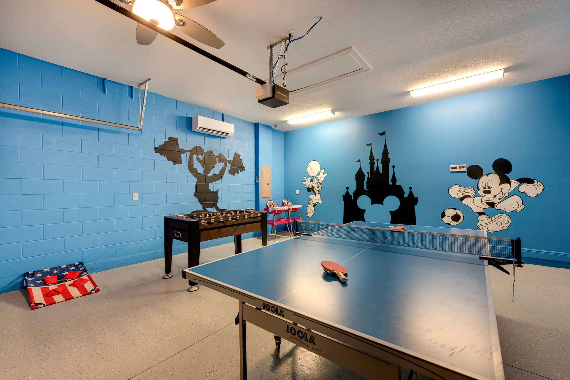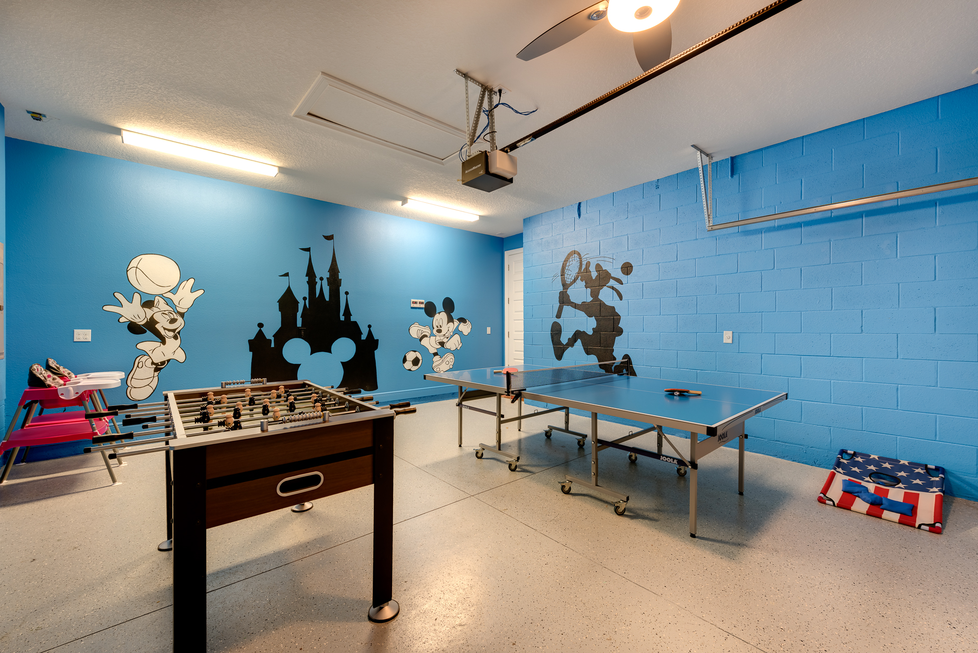 Sleeping up to 11 people, EC260 has bedrooms across both floors including 2 children's themed bedrooms! The main living area is equipped with a X-Box One video game console as well as your very own themed games room with a ping pong and foosball table, so the fun does not have to end at the theme parks!