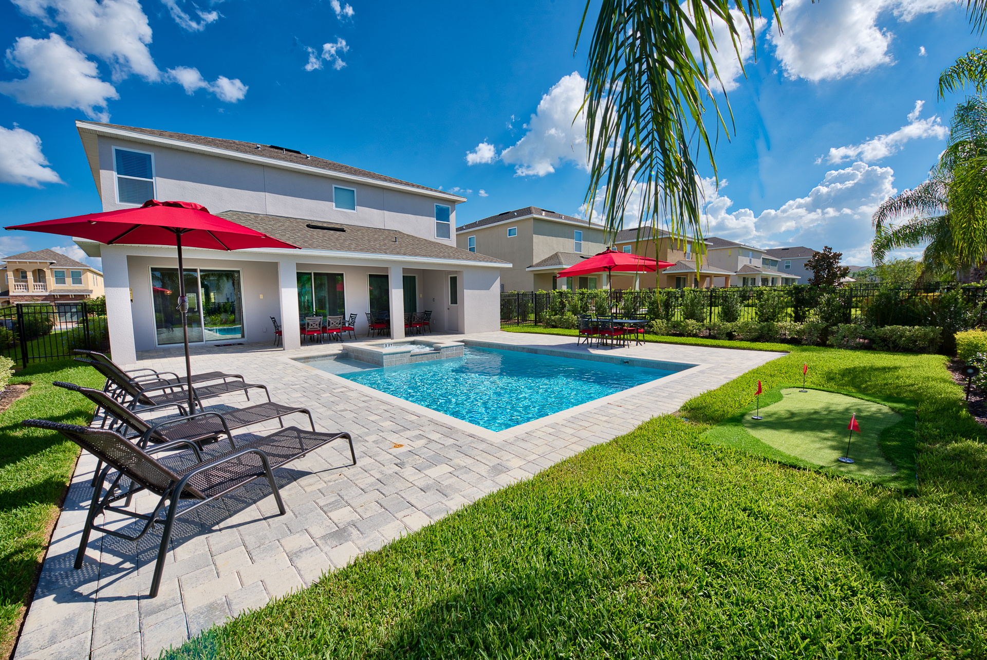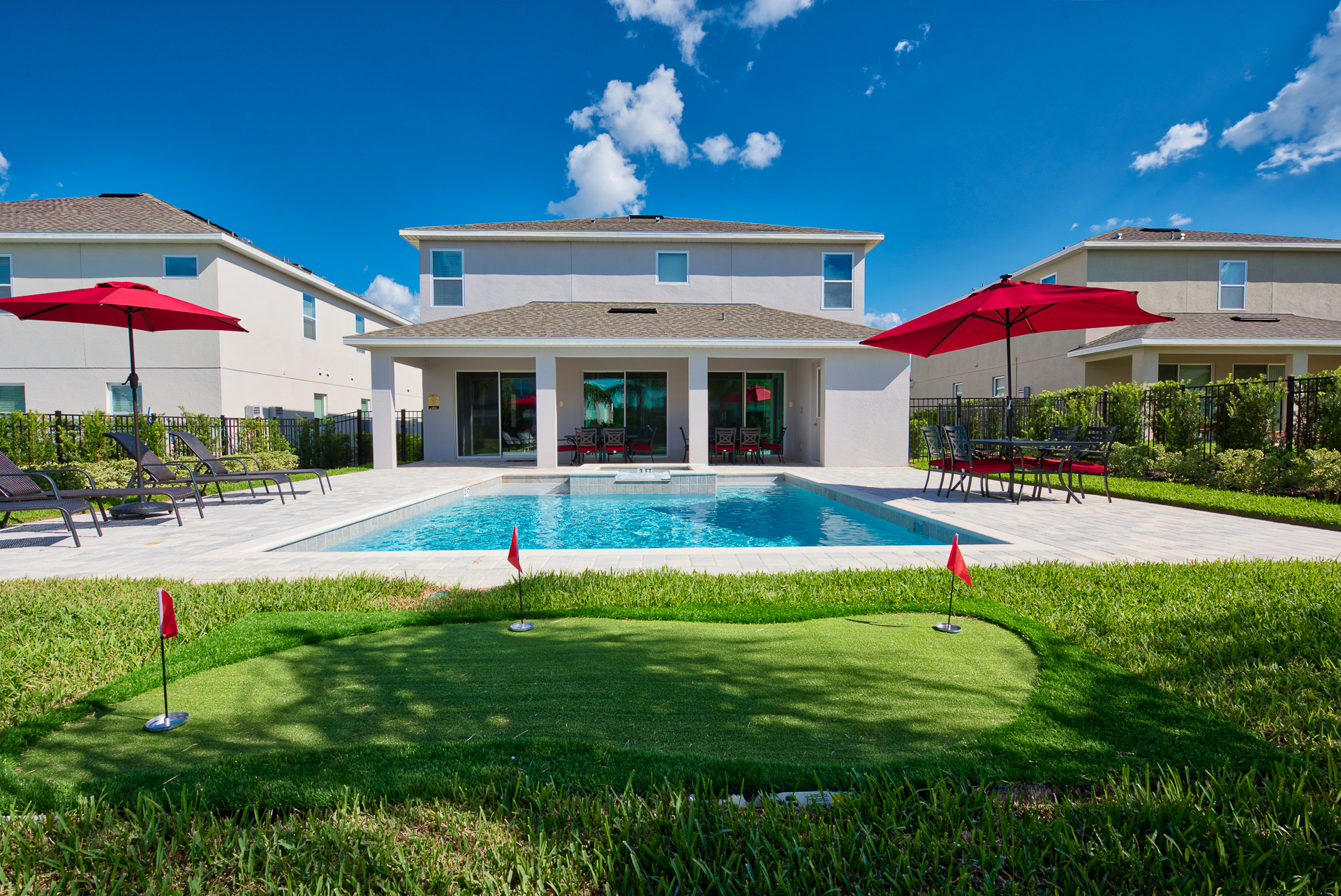 The games room is the perfect place for the whole family to play friendly competitions of air hockey and foosball or the upper floor loft area to watch your favorite movie! The outdoor deck is also a great place to soak up some Florida rays in your very own private swimming pool and spillover spa with a putting green for endless entertainment.