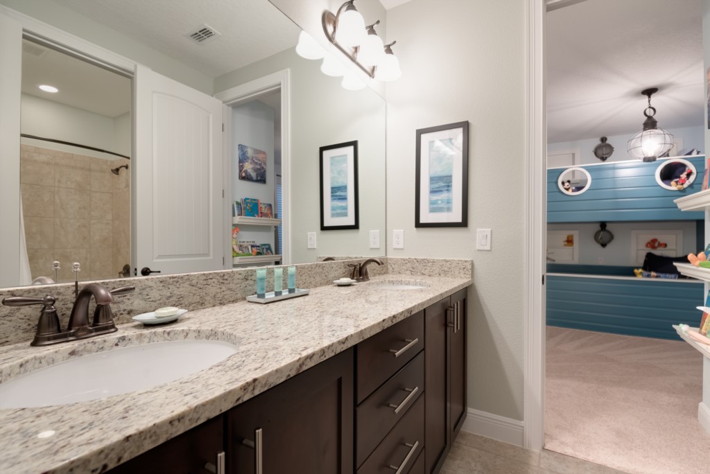 Disney themed bunk room with 2x Twin beds - Jack n Jill suite (Shower and twin vanities)
