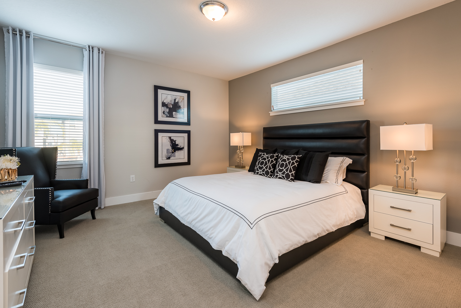 King sized Master with en suite (shower-2x shower heads, twin vanities) and an accent chair