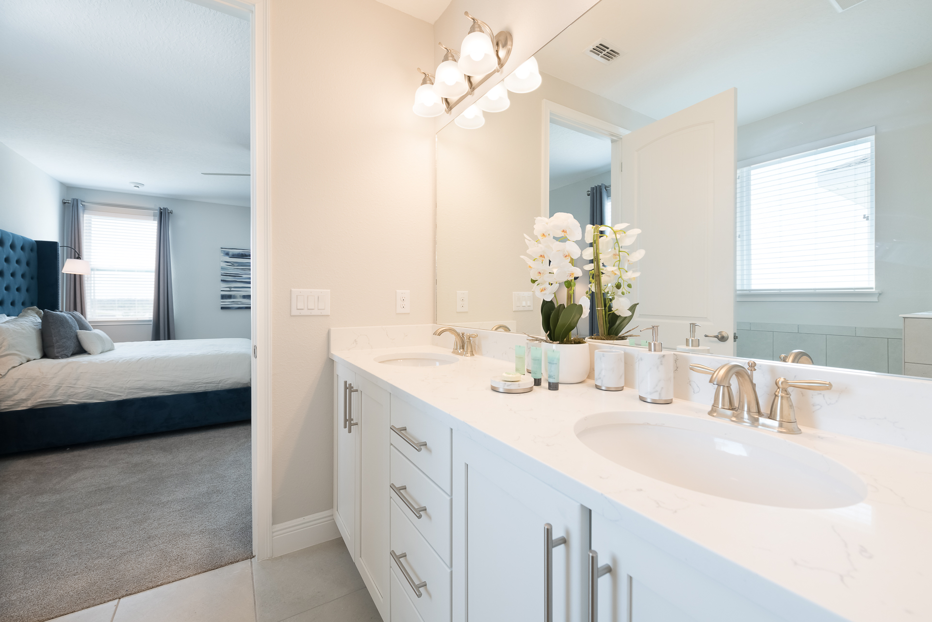 King sized bedroom with en suite (shower, twin vanities)