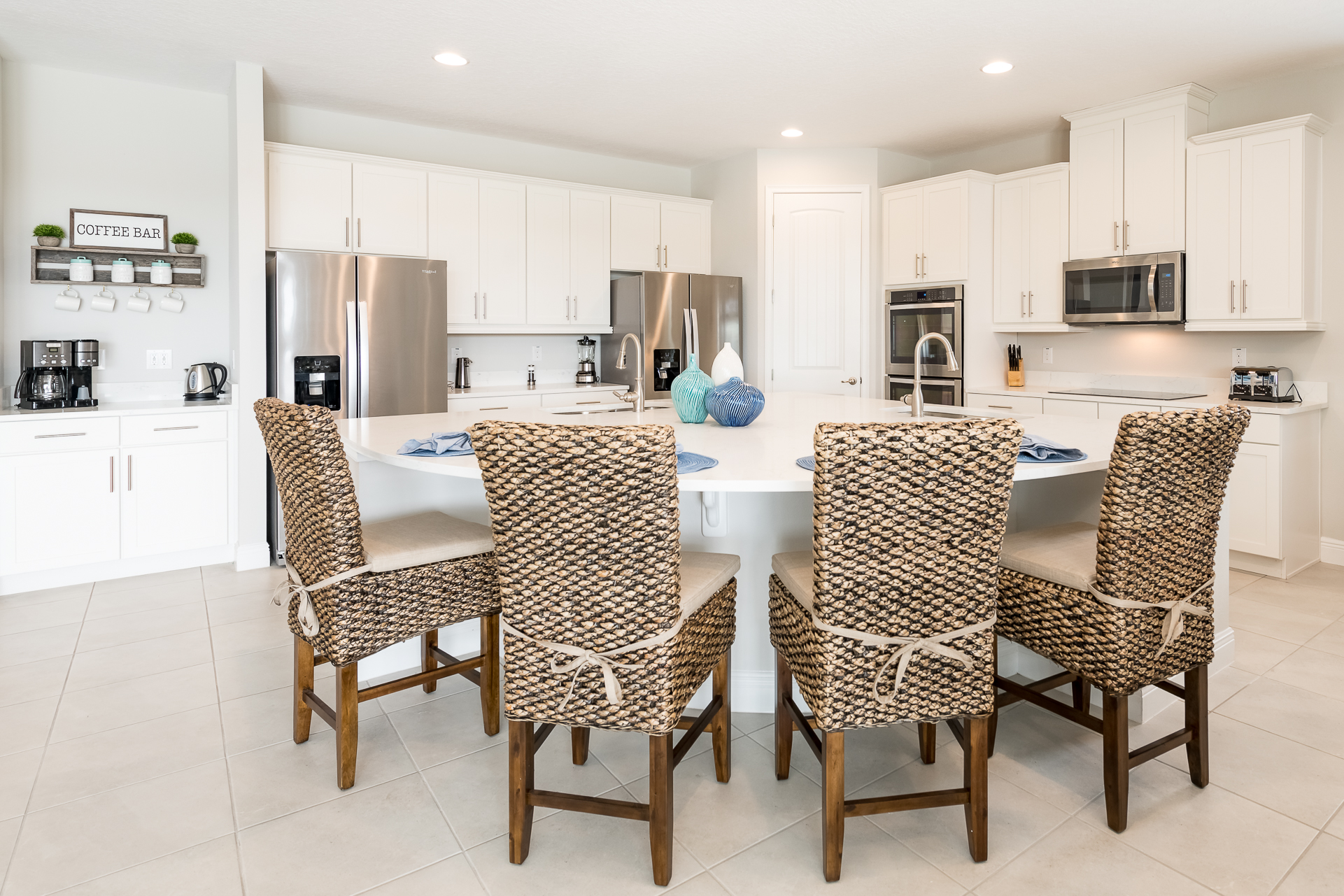 2x Refrigerator/freezers, double ovens, microwave, 2x dishwashers, coffee maker, toaster, blender