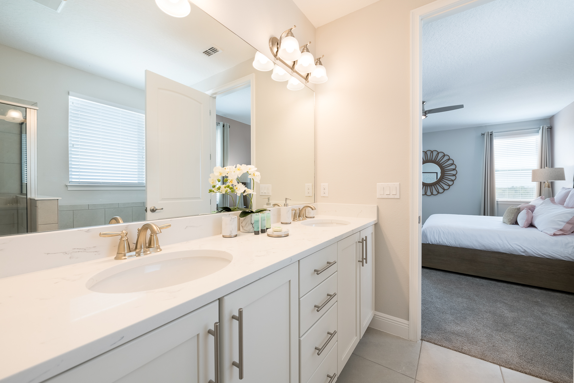 Family bathroom (shower, twin vanities)