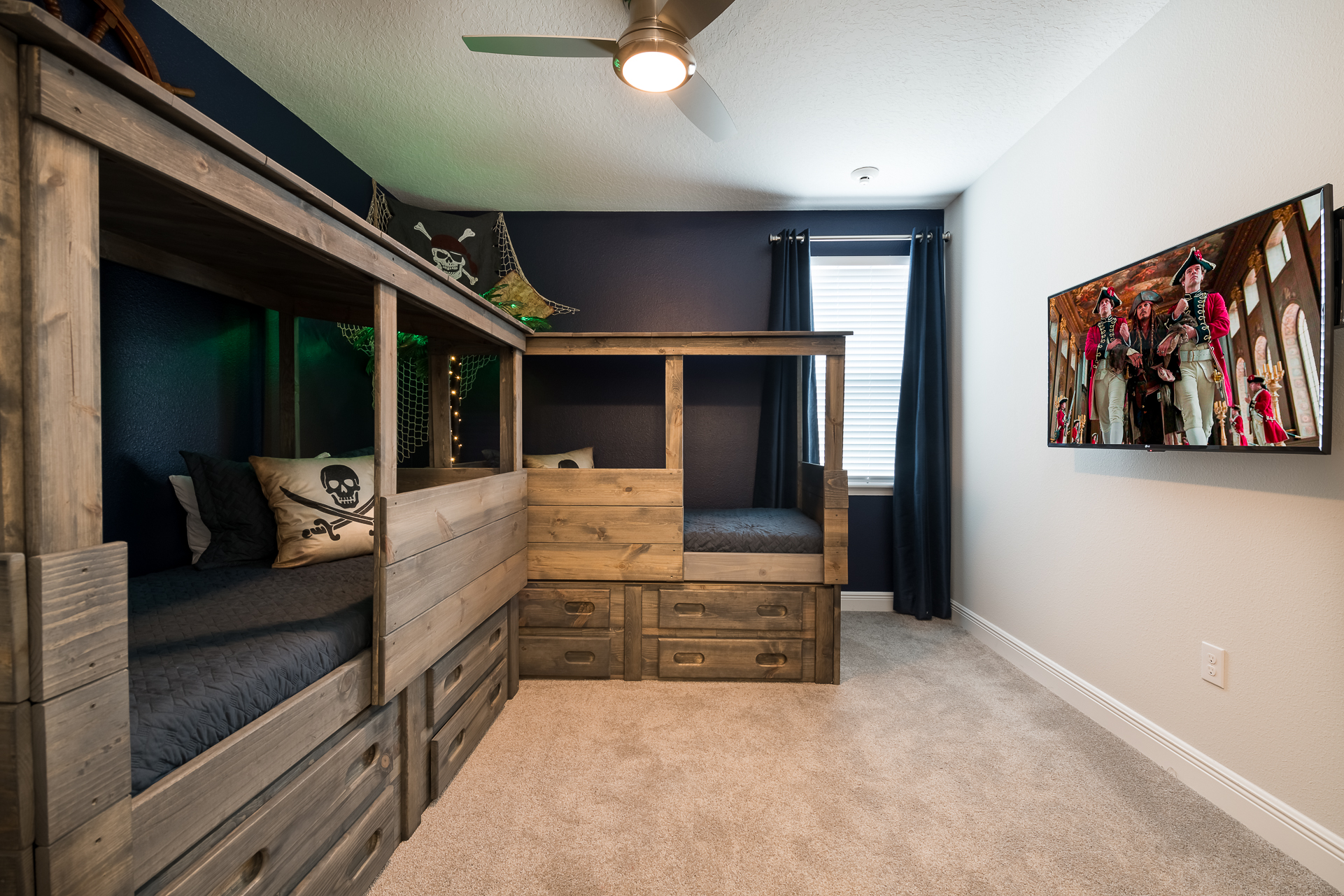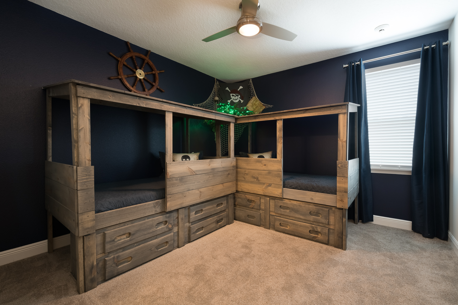 Pirate themed bedroom with 2x Twin sized beds and an en suite (shower)
