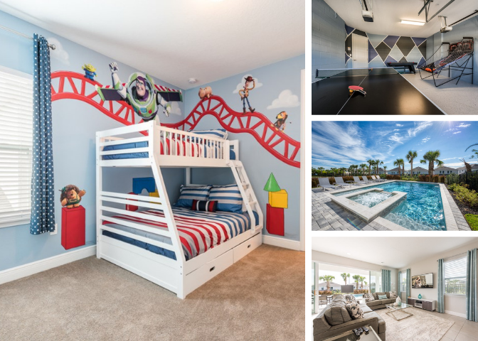 Sleeping up to 13 people, EC272 has bedrooms across both floors including a children's themed bedroom as well as a games room equipped with a ping pong and air hockey table and an upper floor loft area with a foosball table and X-Box One video game console, so the fun does not have to end at the theme parks!