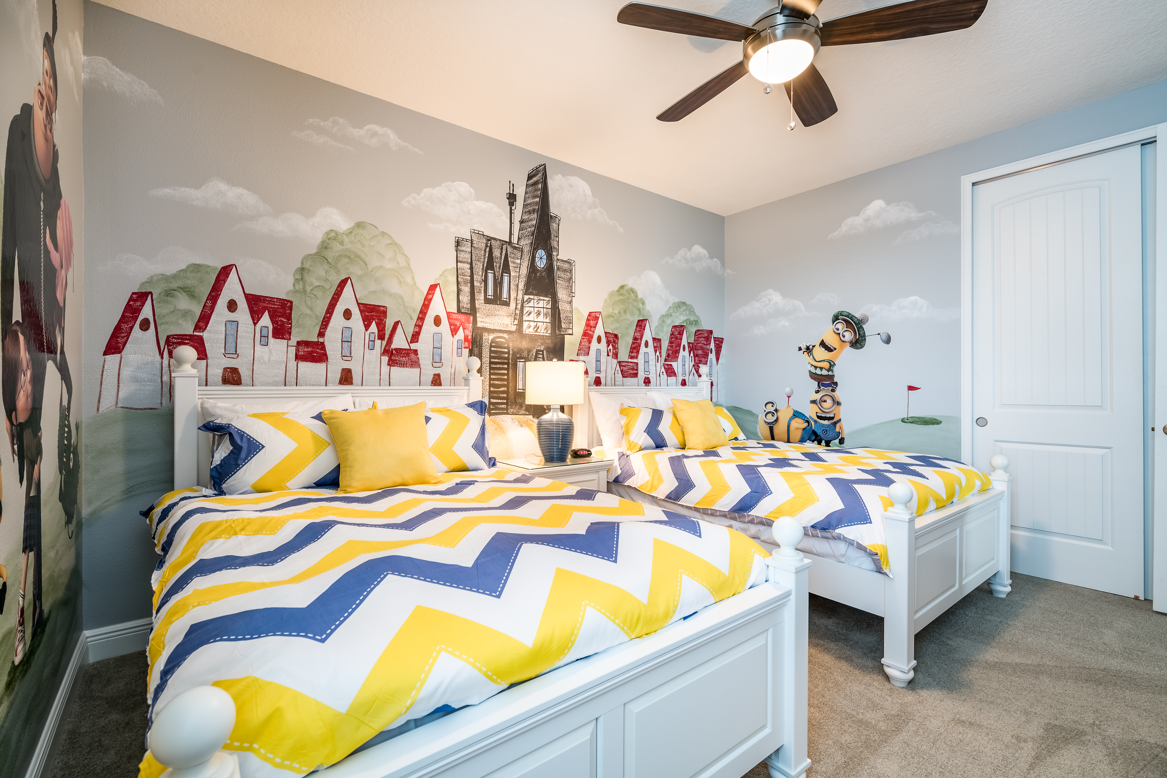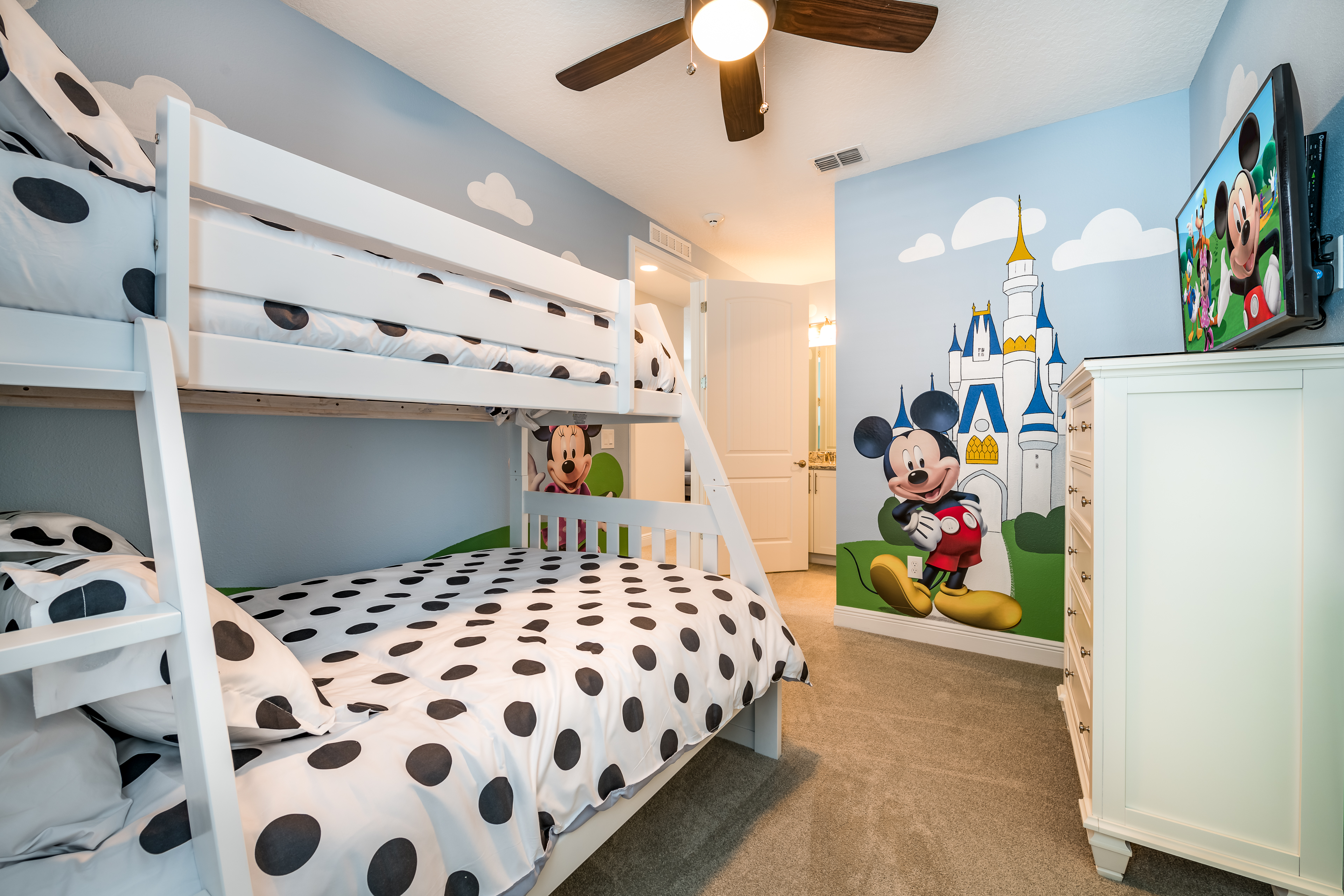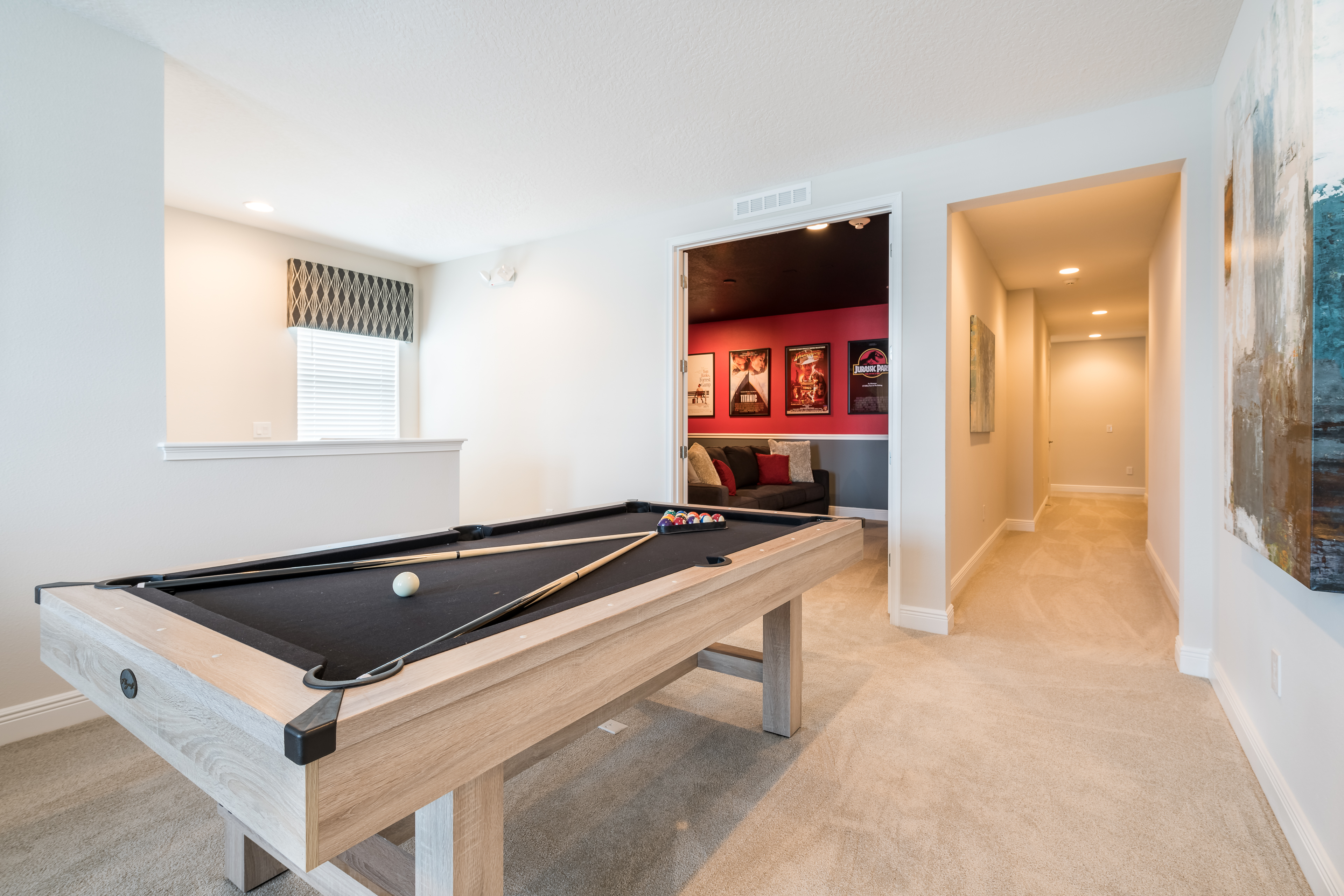 Sleeping up to 18 people, EC277 has bedrooms across both floors including 3 children's themed bedrooms as well as a games room equipped with a ping pong and foosball table as well as a home theater and upper floor loft area with a pool table, so the fun does not have to end at the theme parks!