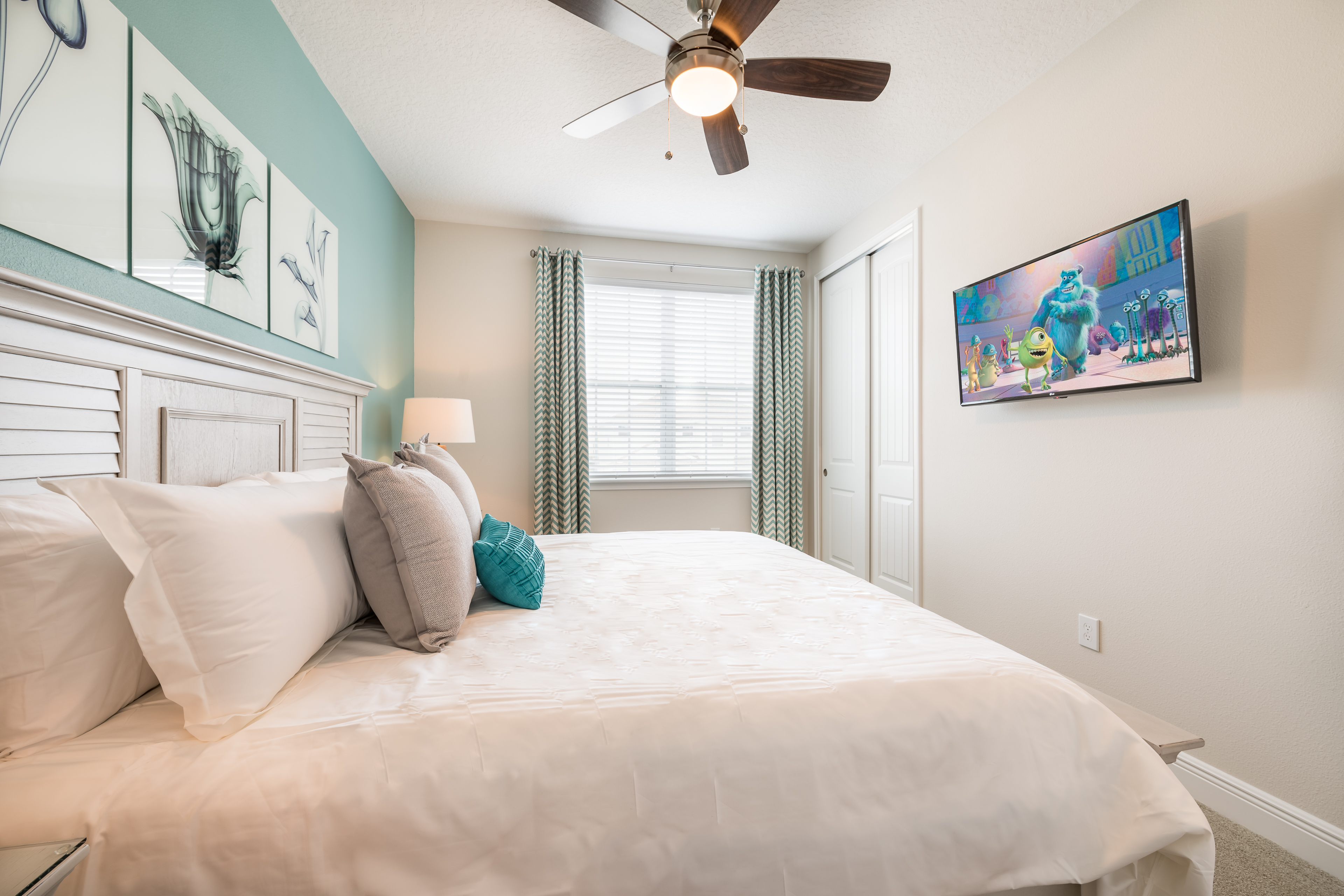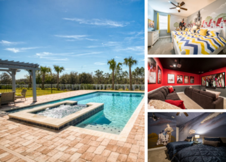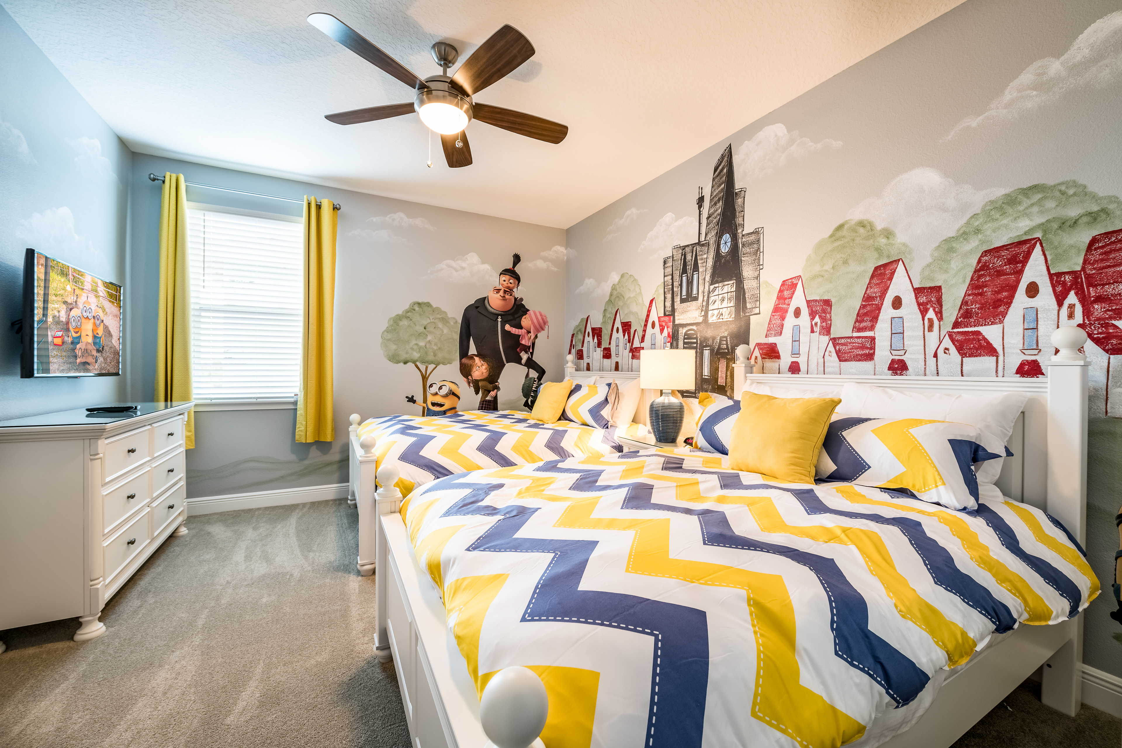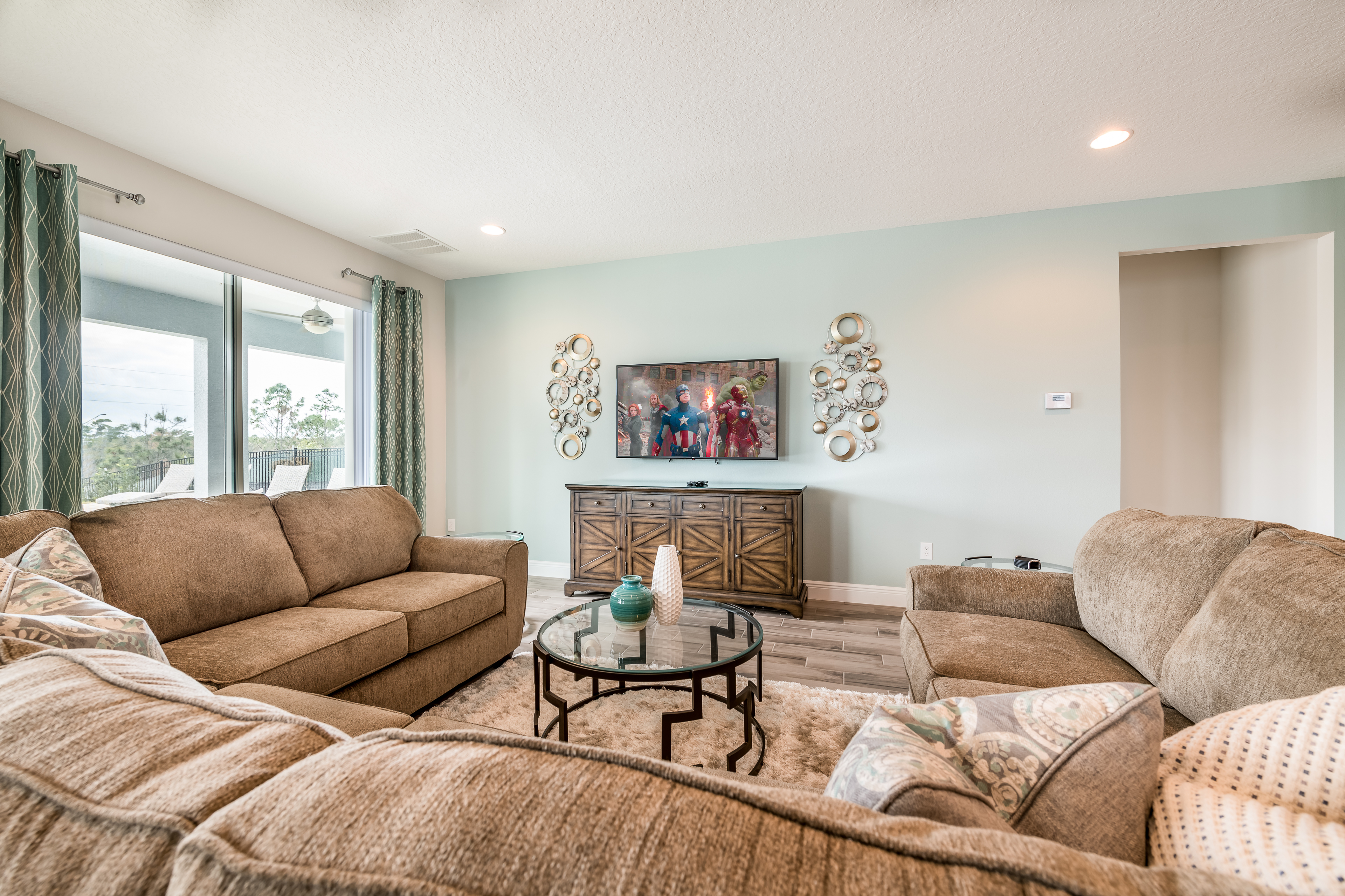 Sleeping up to 18 people, EC277 has bedrooms across both floors including 3 children's themed bedrooms as well as a games room equipped with a ping pong and foosball table as well as a home theater and upper floor loft area with a pool table, so the fun does not have to end at the theme parks!