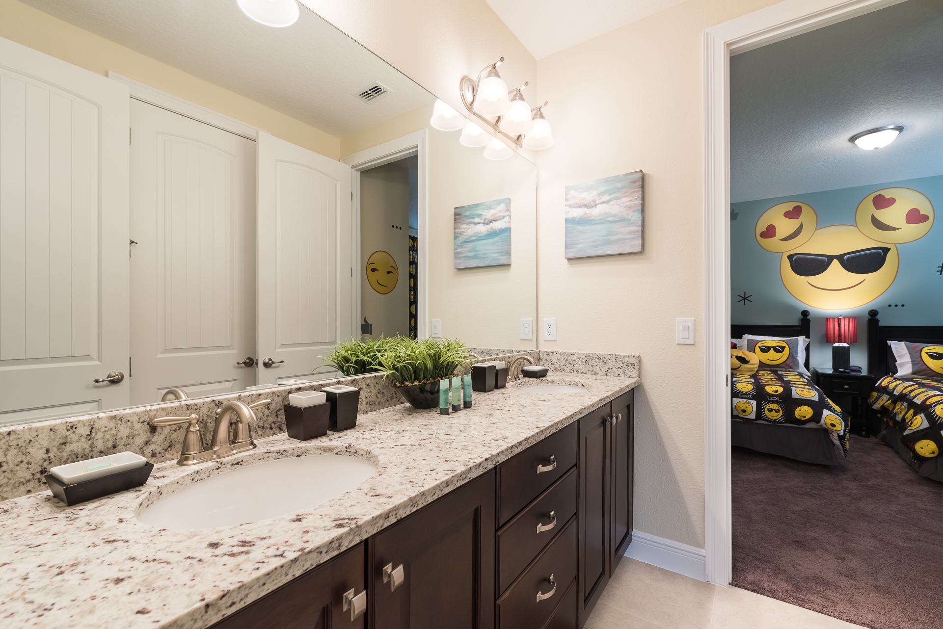 Themed bedroom with 2x Full sized beds and an en suite (Jack/Jill style- shower, twin vanities) connecting to a King sized bedroom