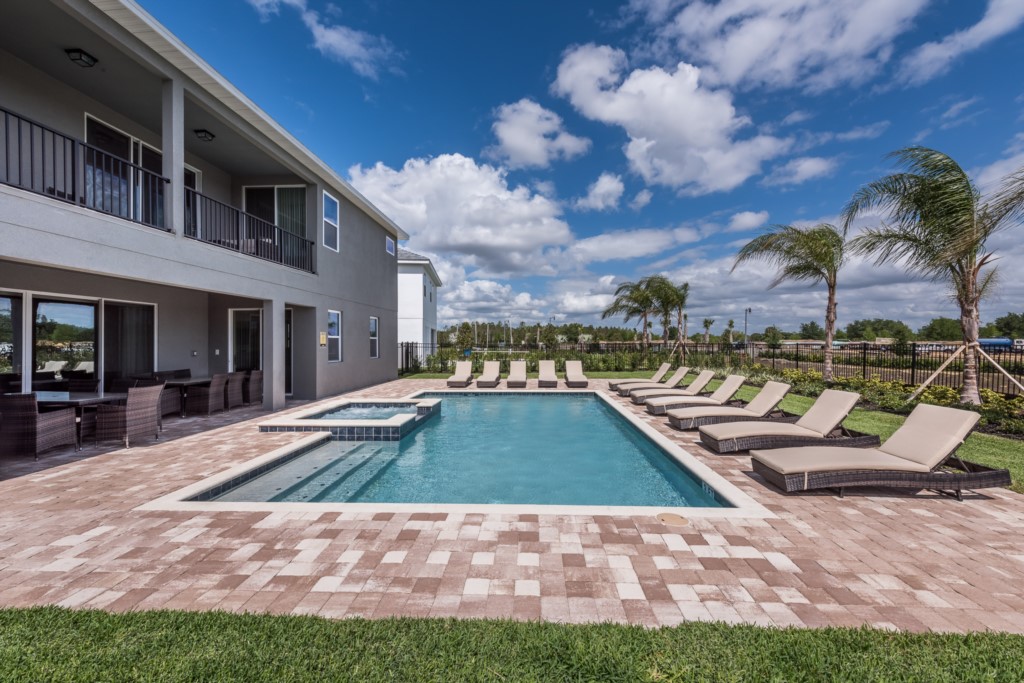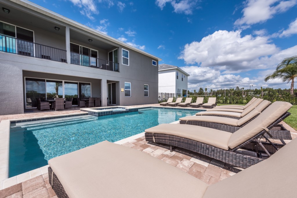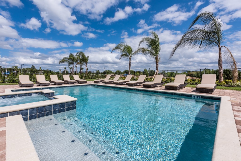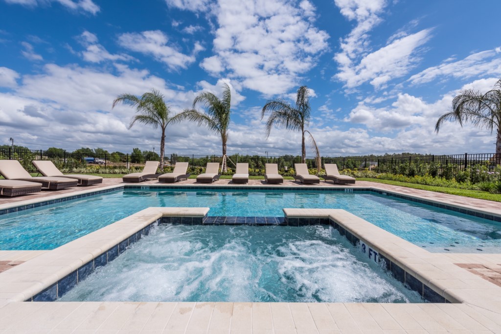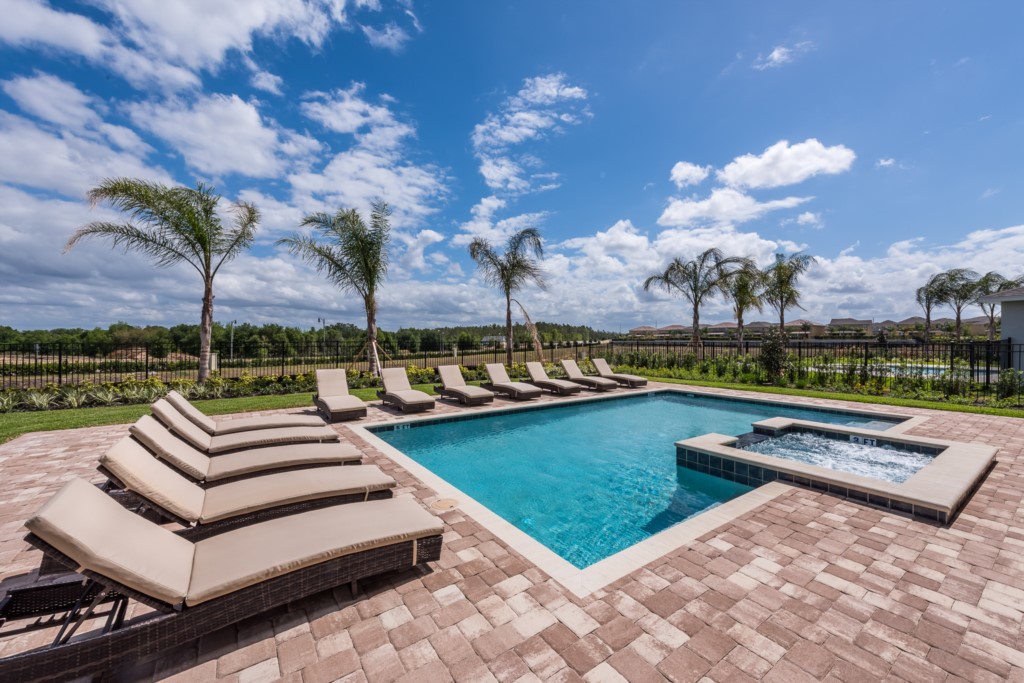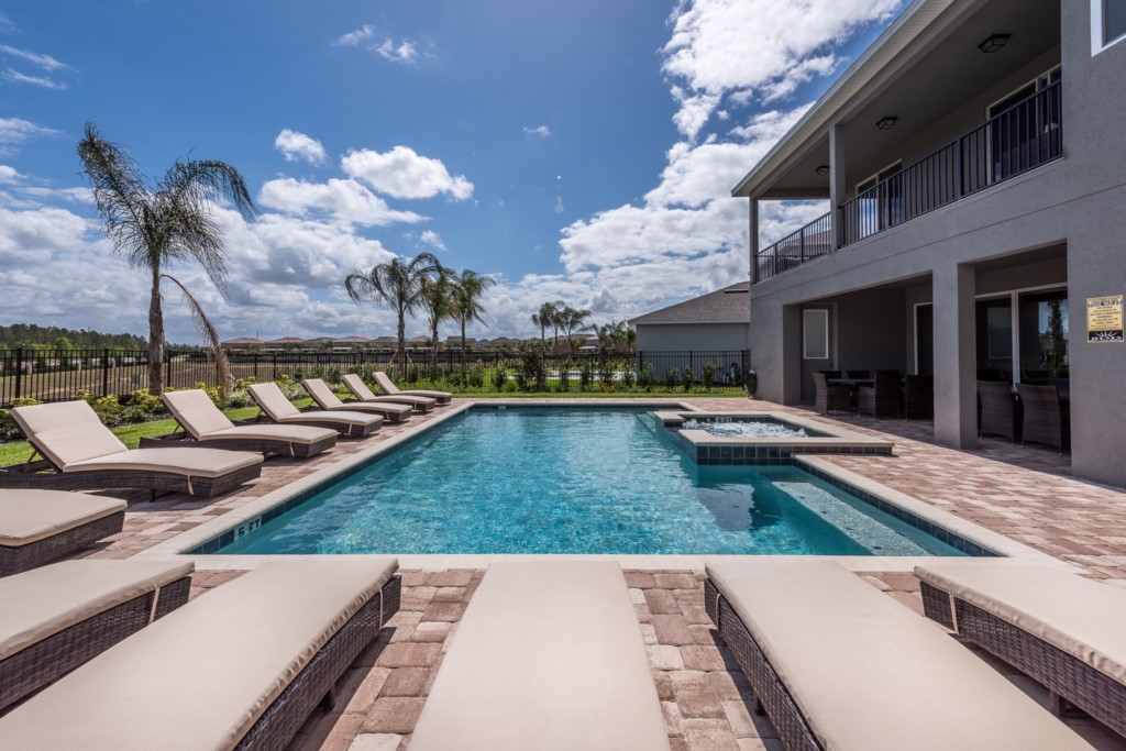 The private outdoor pool deck and spa is the perfect way to enjoy Florida's warm weather any time of the day.