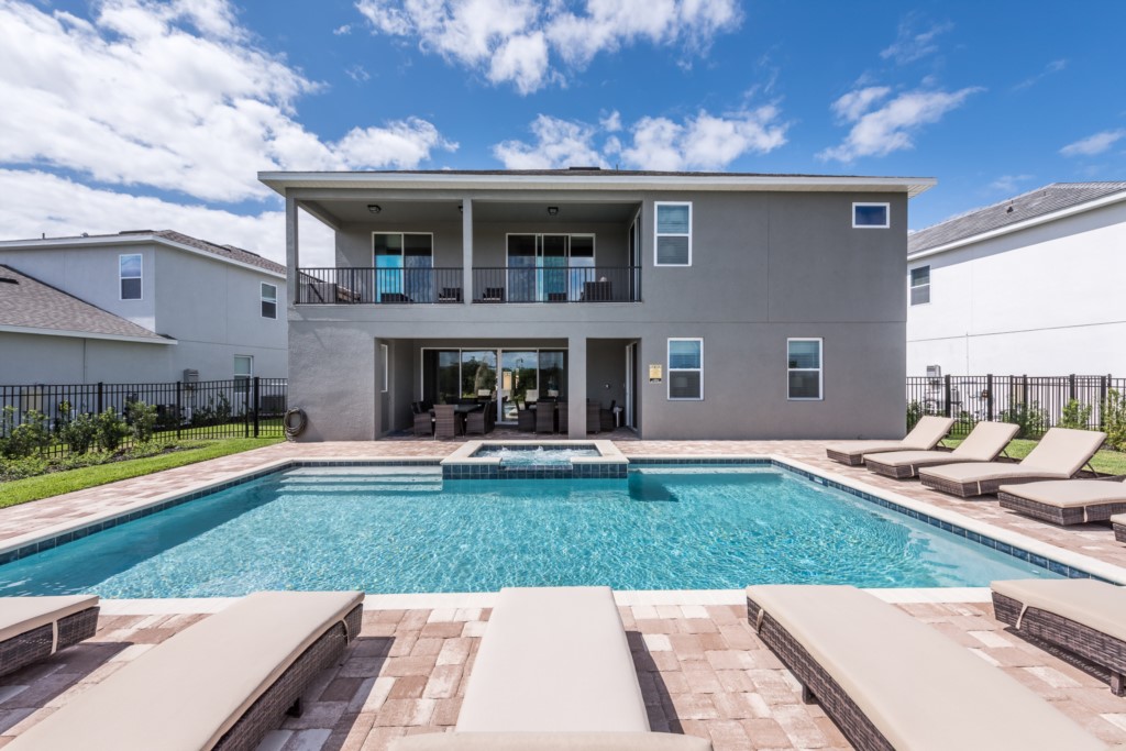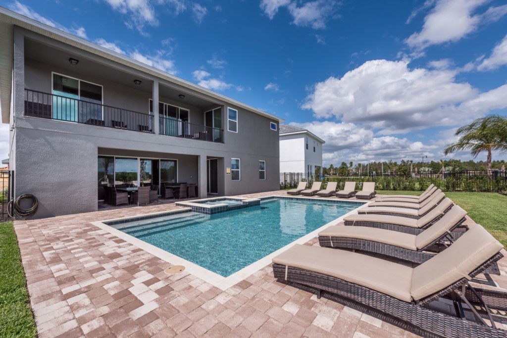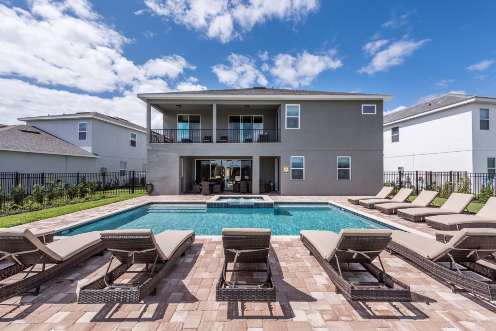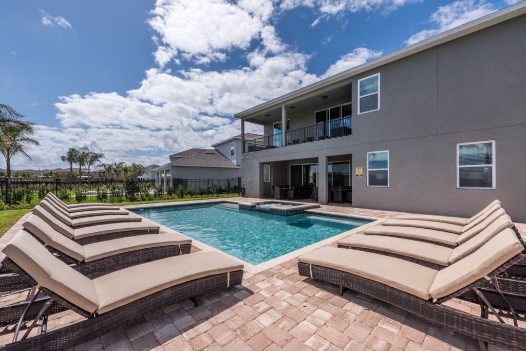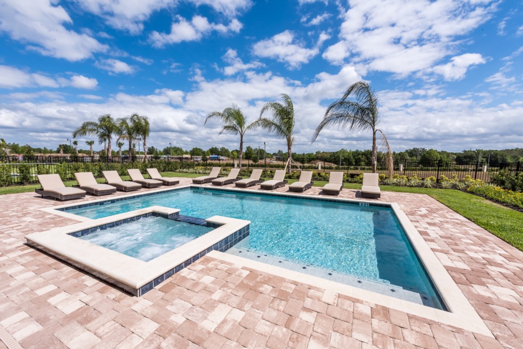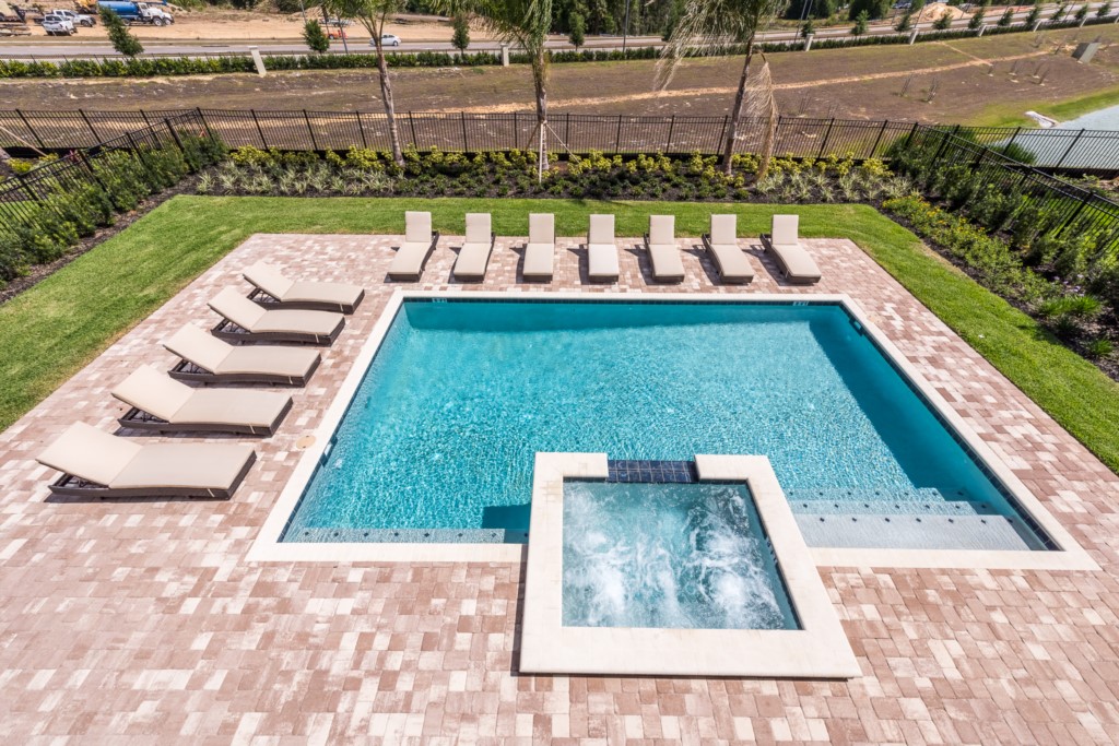 The private outdoor pool deck and spa is the perfect way to enjoy Florida's warm weather any time of the day.