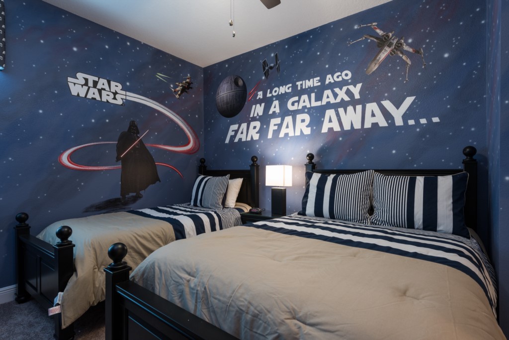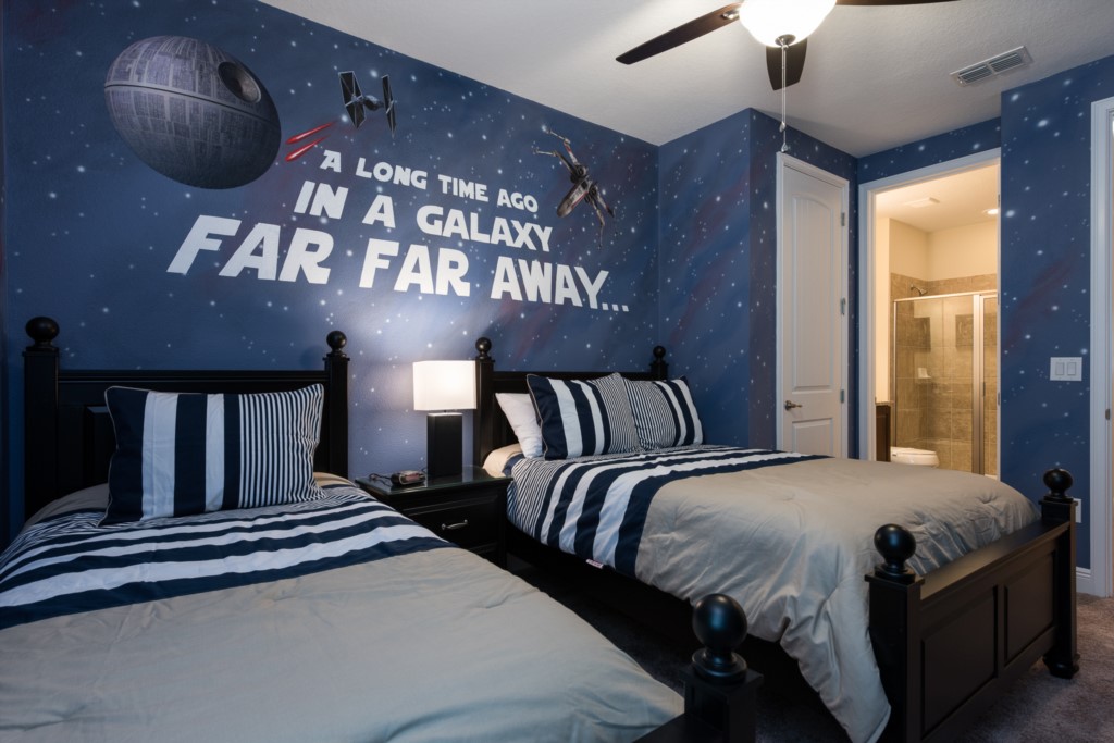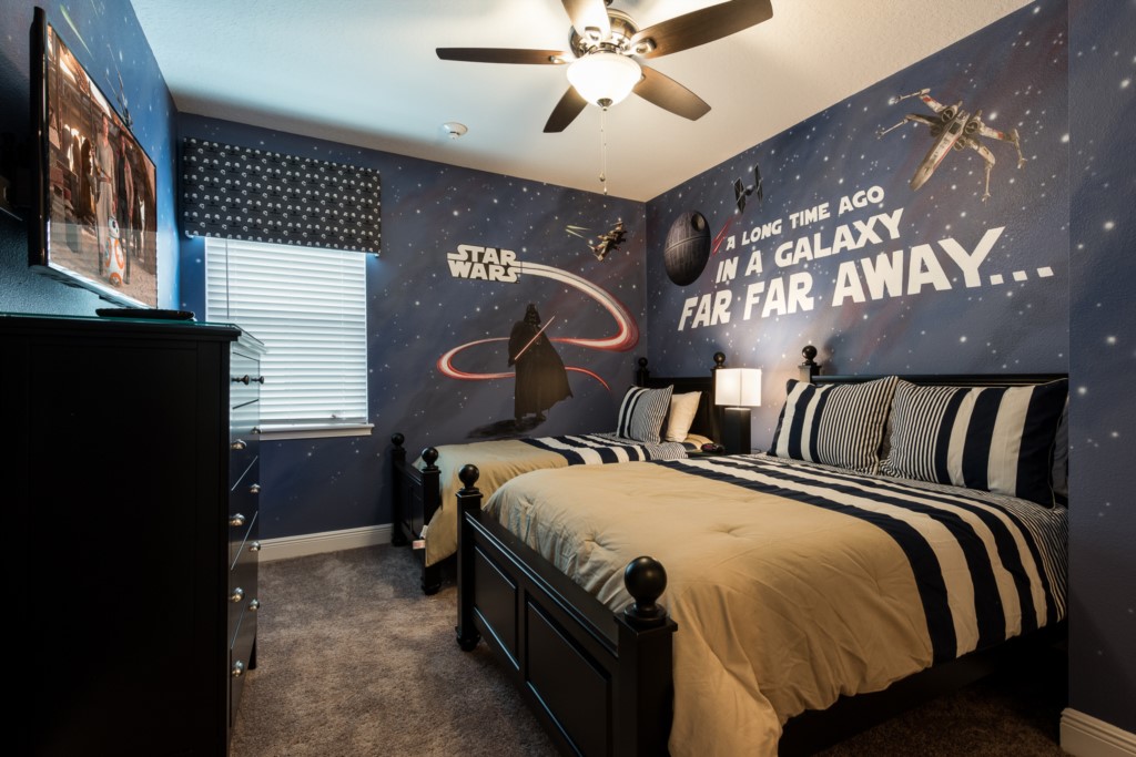 'Star Wars' themed bedroom with a Twin and Full sized bed and an en suite (shower)