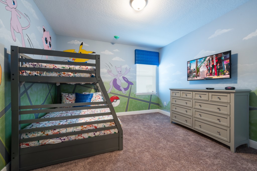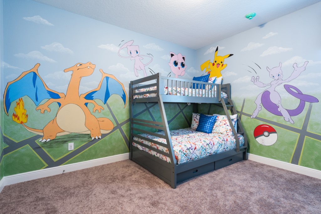 'Pokemon' themed bedroom with bunk beds (Twin and Full sized bed) and an en suite (shower)