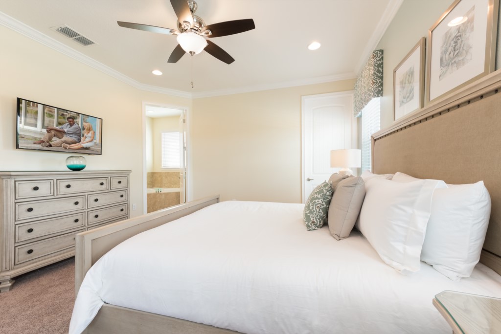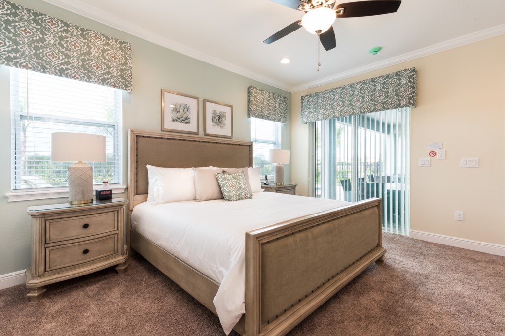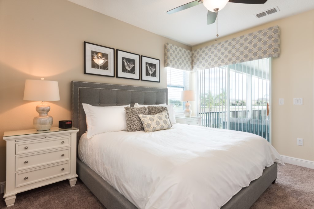 King sized Master with en suite (shower, tub, twin vanities) and patio access