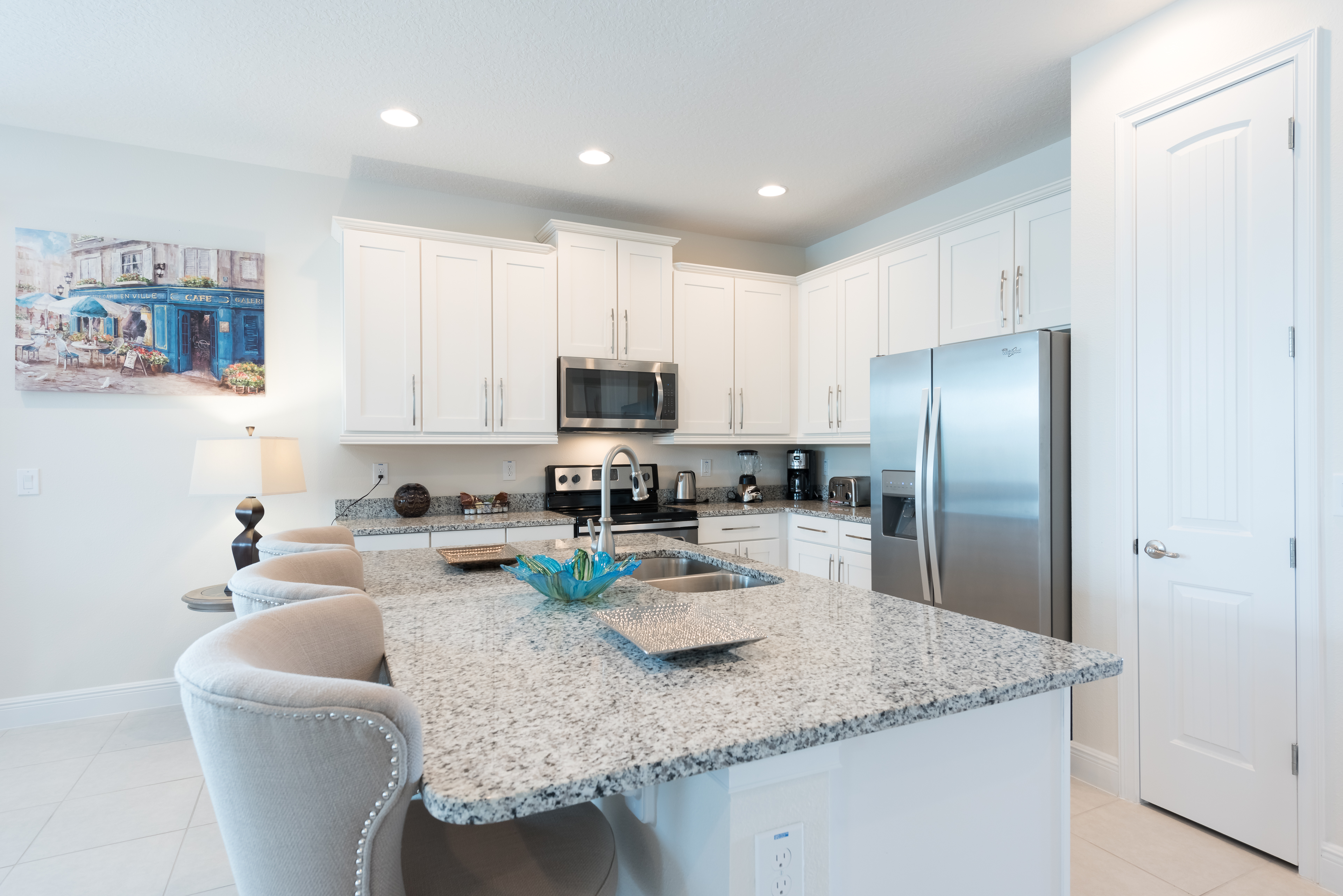 Fully equipped with a granite 3 seat island style breakfast bar