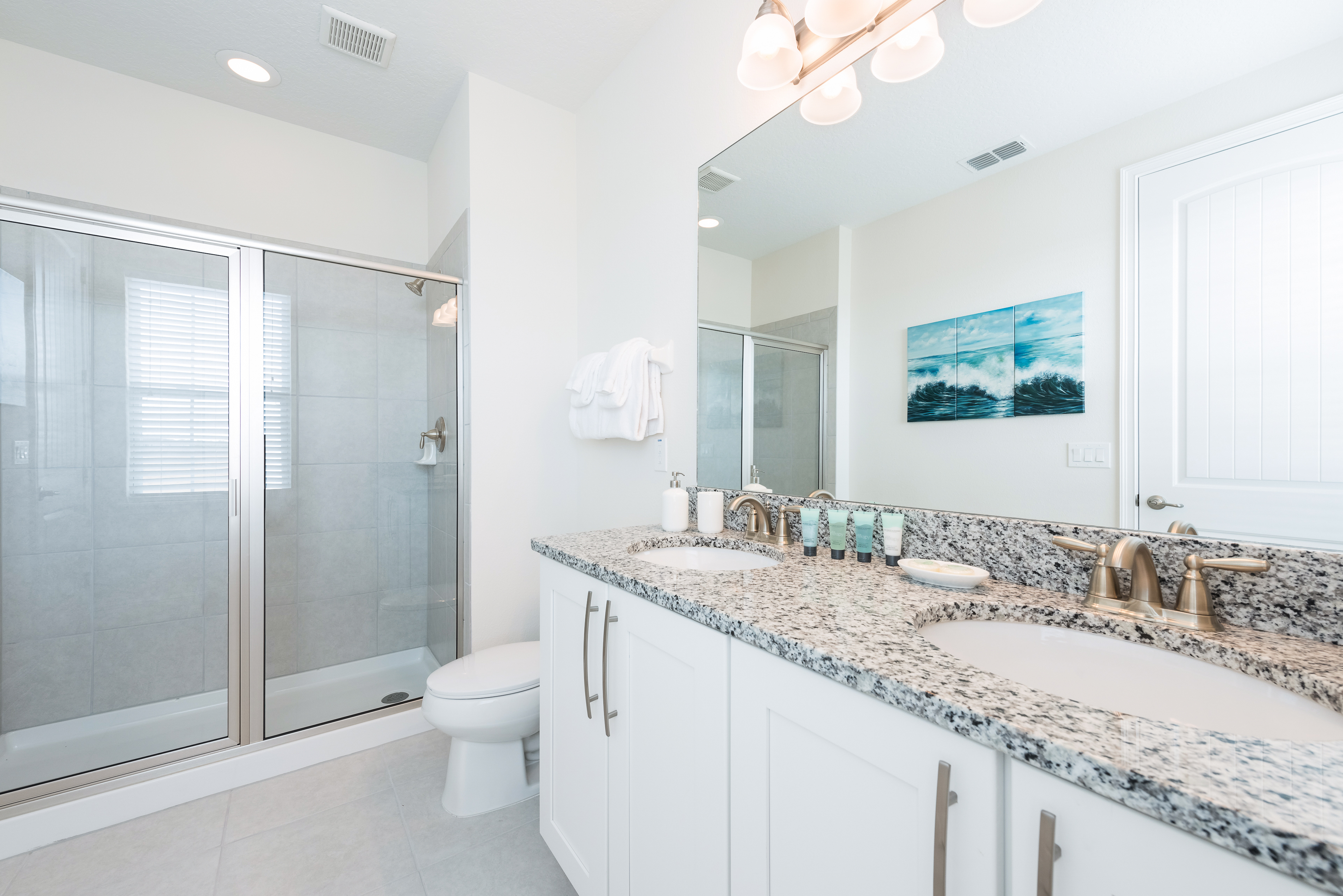 Family bathroom (shower, twin vanities)