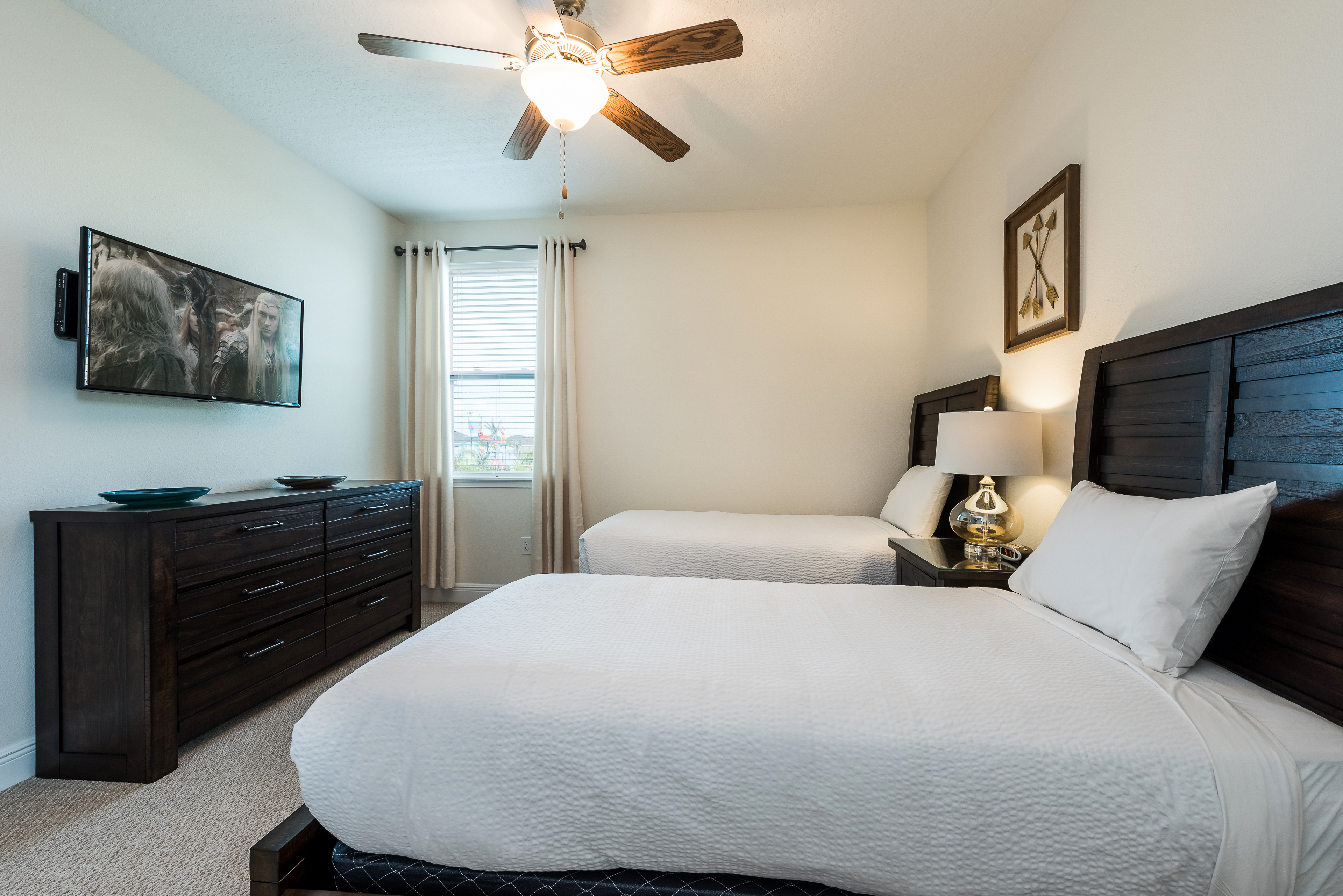 Sleeping up to 16 people, EC297 has bedrooms across both floors as well as an upper floor loft area and a prime location backing onto the Encore Resort water park! This home has a major advantage with close walking distance to everything the Encore Resort has to offer!