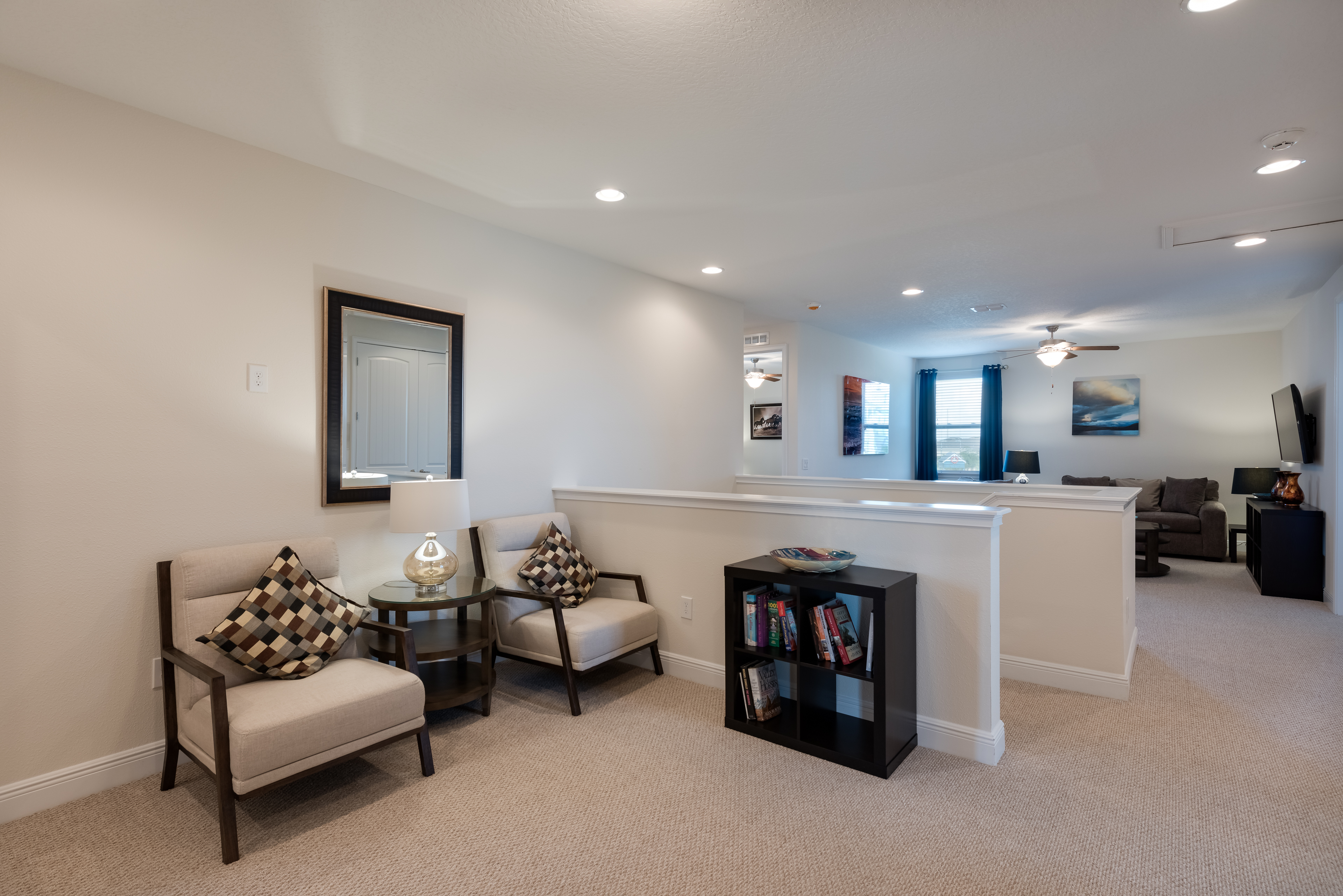 Additional seating area upstairs with 2x accent chairs