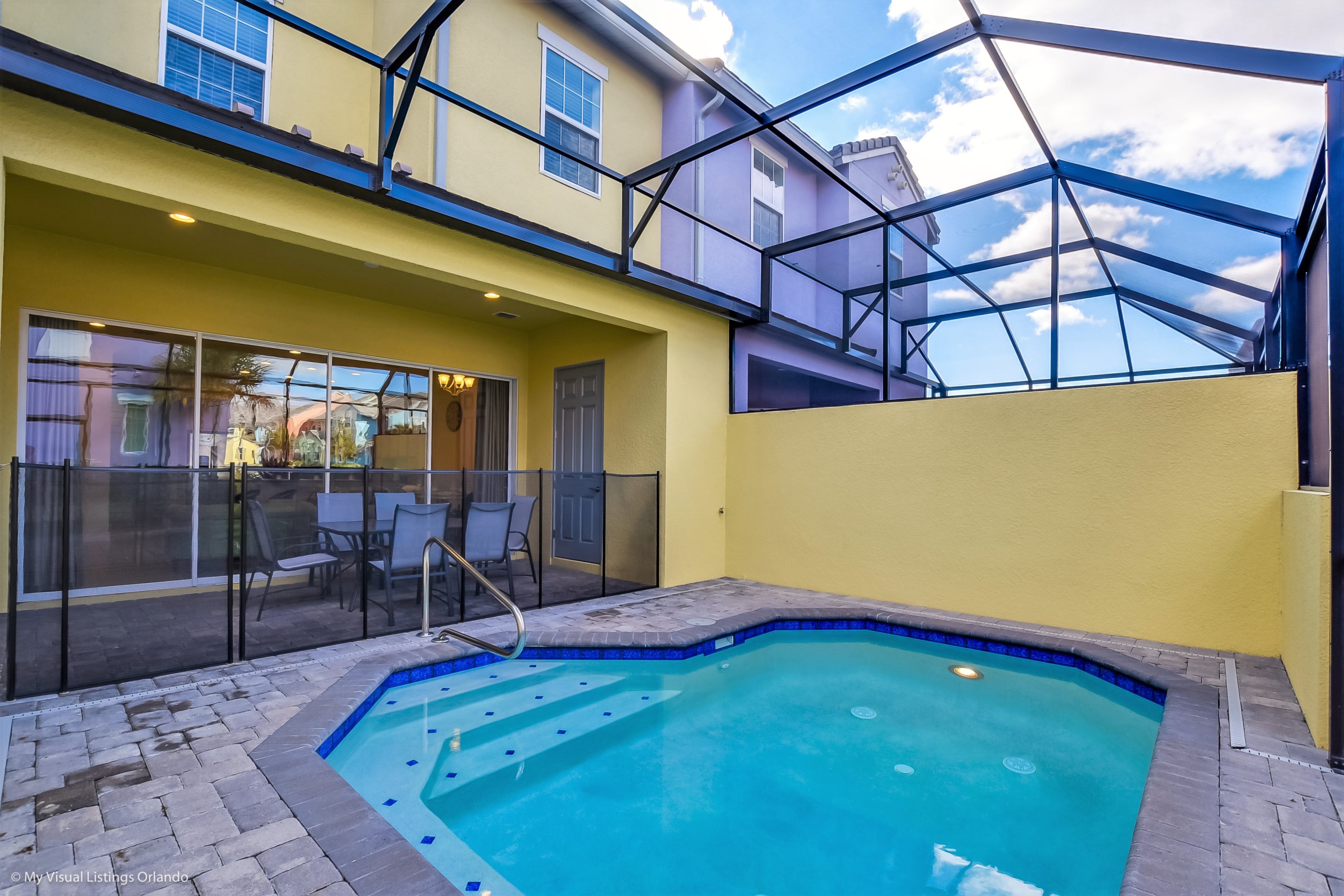 Festival of Fun is a newly built town home in the growing Festival township. This impressive 5 bedroom home is going to be you and your family's new favorite vacation home! Offering 4 bedrooms, 4 bathrooms, a private plunge pool and plenty of leg room for you and your family, this home will let you live the Florida lifestyle on your vacation while spending a fraction of the cost of a hotel! Newly built and furnished with contemporary decor there is no question you will love your stay with us. The woodland community also offers a sense of escape and privacy while being located just minutes from the magic of Orlando!