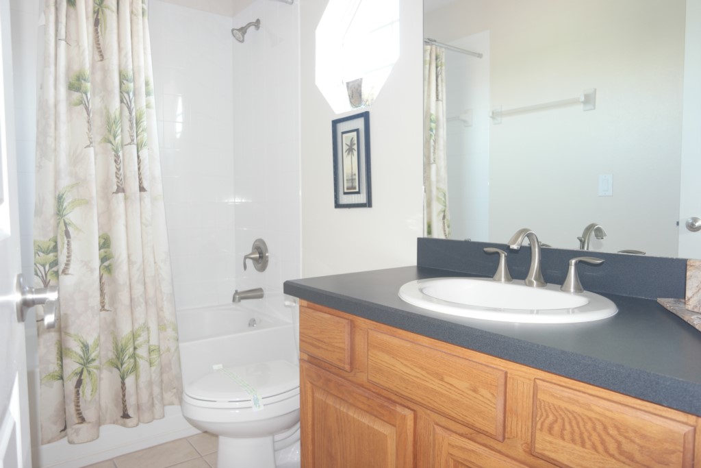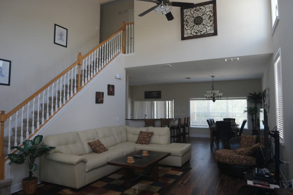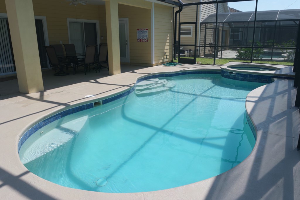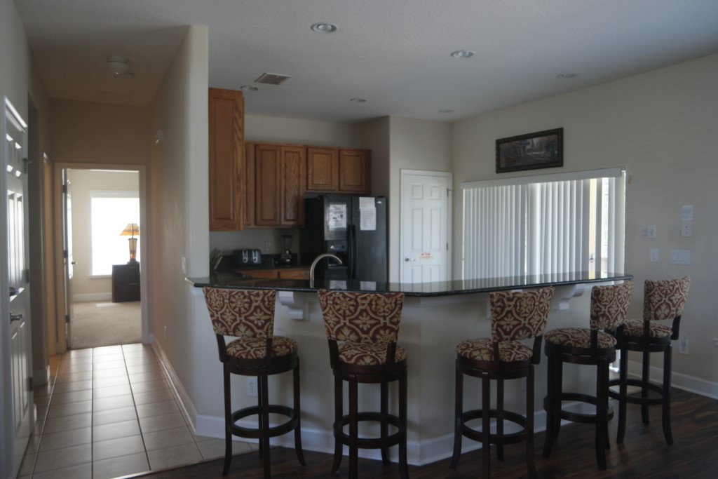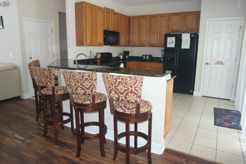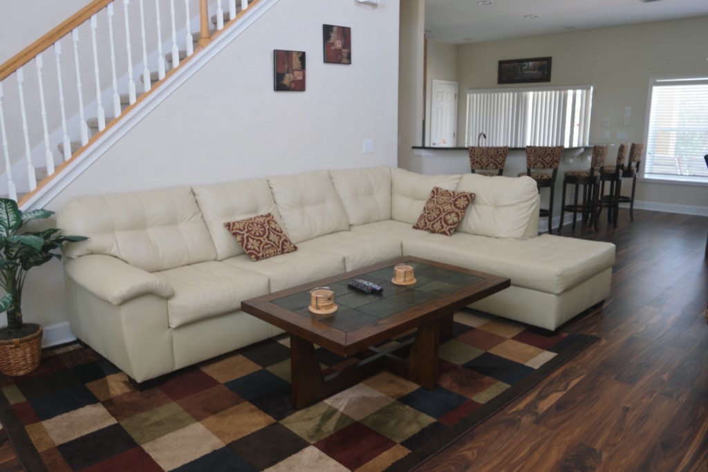 The first floor of this amazing home features an open floor plan with living room, dining room, and large kitchen. The living room has plenty of comfortable seating perfect for gathering with the family for a movie or just simply hanging out. The dining room seat 6 with more seating at the breakfast bar. The kitchen is fully equipped and features stainless steel appliances. The sliding doors lead you to the pool area in the Florida sun with splashes in the South-facing pool and Jacuzzi spa. The full cabana bathroom is a great feature for when pool time is in full effect. If you prefer indoor activities, you can enjoy a game of pool, fooseball, Xbox One or Nintendo Wii.