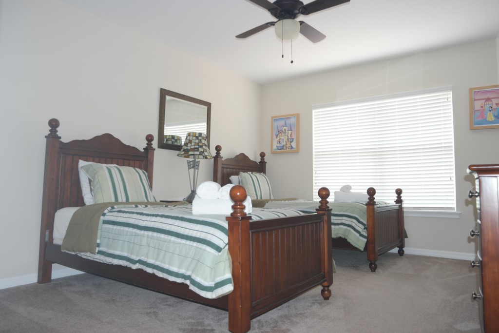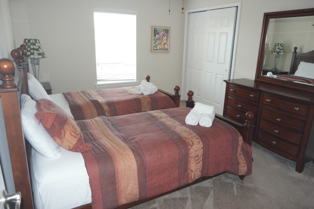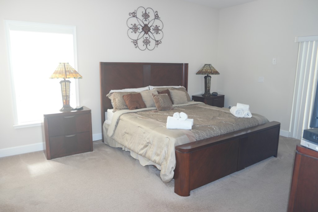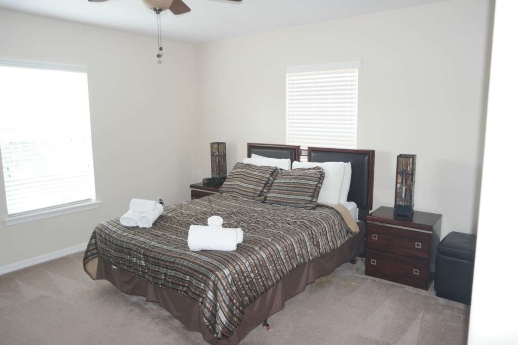 One of the master en-suite is located one the first floor. A king size bed, 19” Flat screen TV, walk-in closet and full bath will have you enjoying some down time after a long day of adventure. Also on the main floor is a half bath and the laundry room. The large staircase leads you to the 2nd story featuring 2 master en-suites, 2 twin bedrooms each with 2 twin beds and a full guest bathroom. The master en-suites offers Queen size beds, ample closet space and private full baths. One of the queen masters offer a 40" TV with cable. Each of the twin bedrooms have 2 twin beds and share the full bathroom.