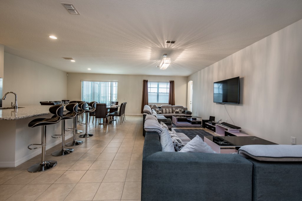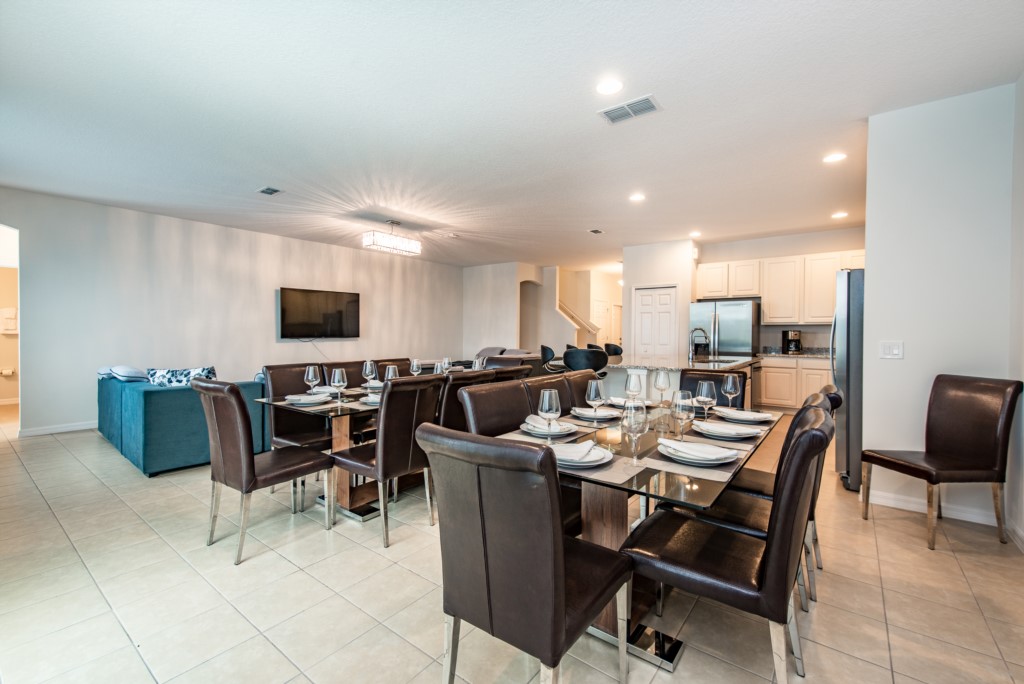 Just a few paces away, a large 16 seat dining table makes a perfect spot for family dinners, as you chat about the day's adventures in the theme parks!