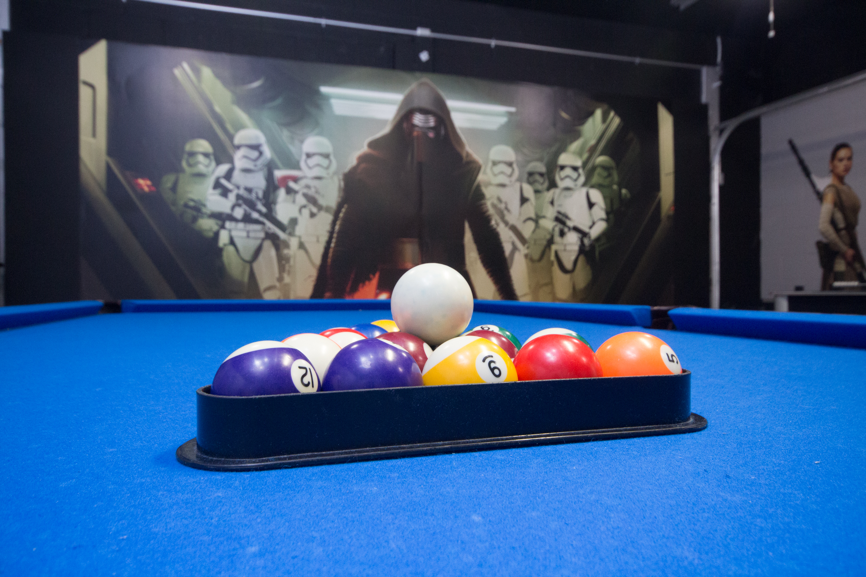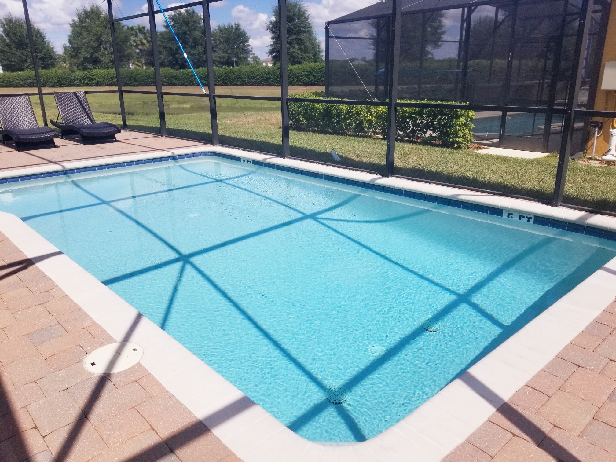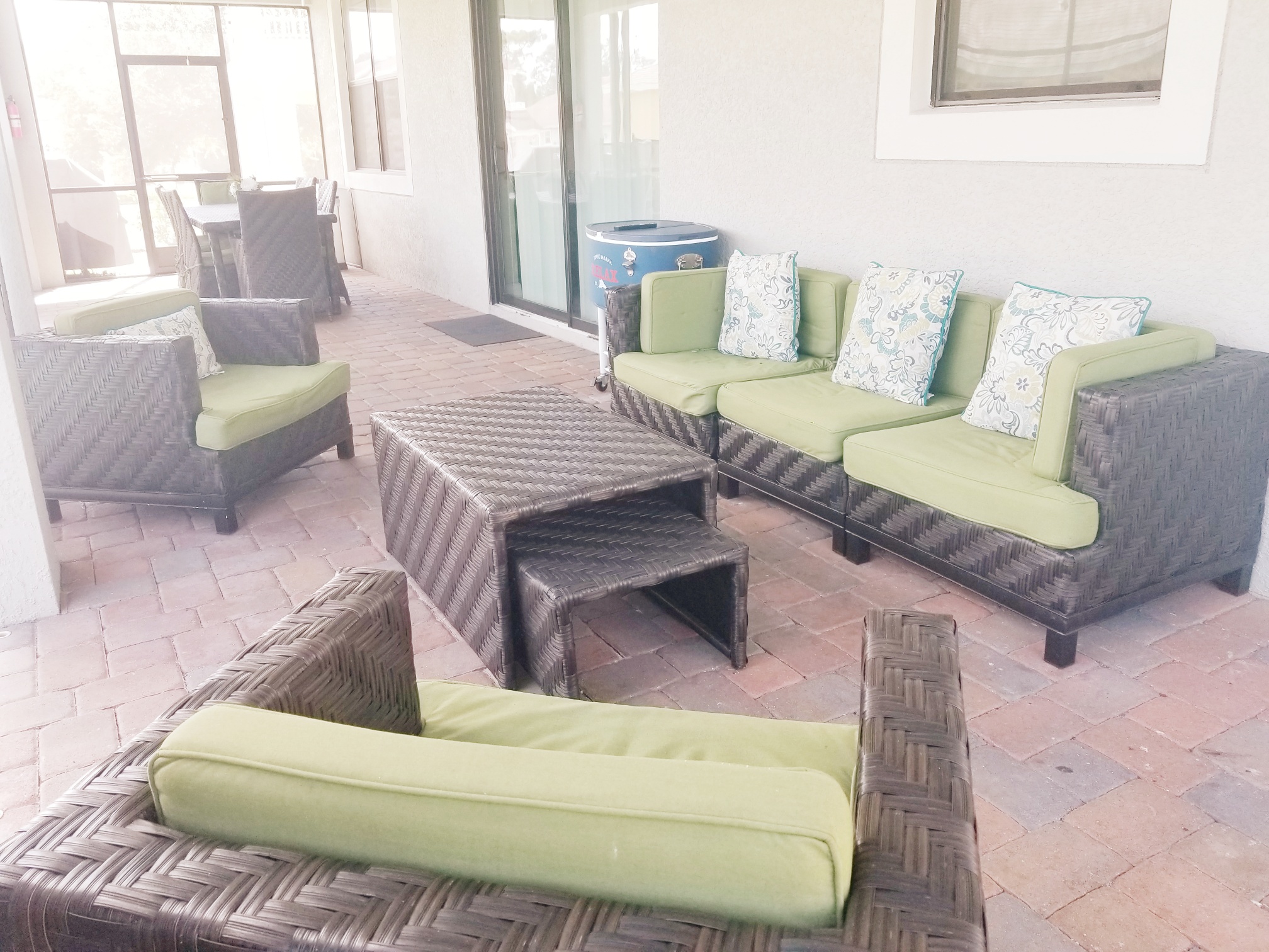 The two best parts of the house? The pool and games room. The Star Wars themed games room is in the converted garage and has a foosball table and a pool table. If you’d rather be outside, there’s a nice-size pool at the back. The pool area is screened in to keep out those pesky Florida bugs. There are sun loungers for those who want to work on their tan, and there’s a covered lanai with wicker furniture to sit on under it.