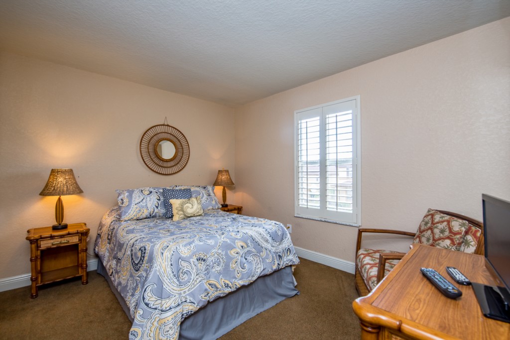 Downstairs bedroom has a king size bed and a private full bathroom.