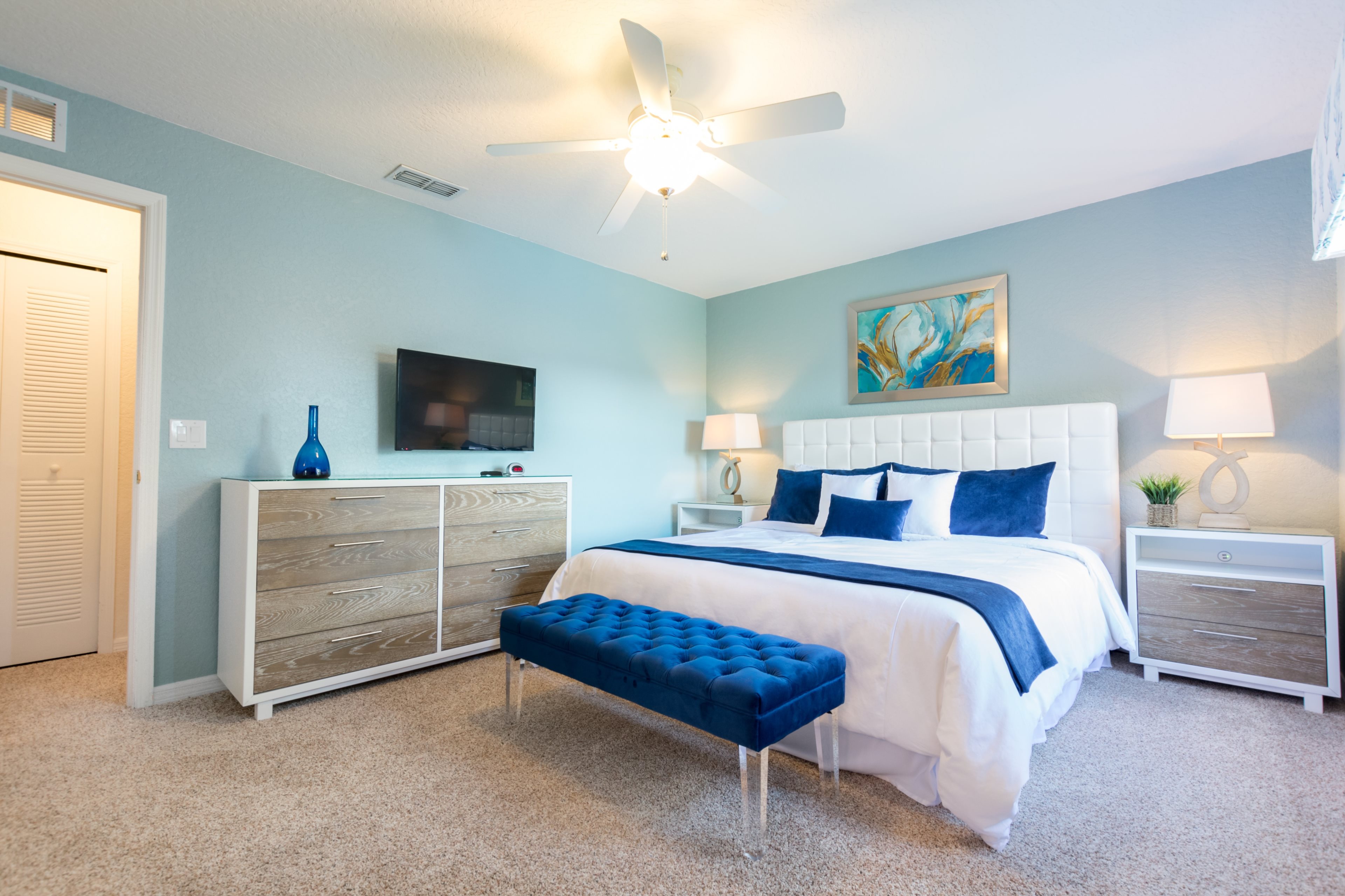 This newly renovated and luxurious home is situated very close to the resort facilities at Regal Palms Resort. The stunning water park and clubhouse will make your vacation unforgettable. Here you can slide into the water, float in the lazy river, have a cold drink in the Tiki Bar, play in the game room - you name it!