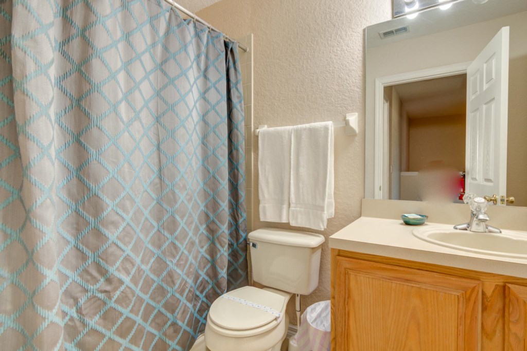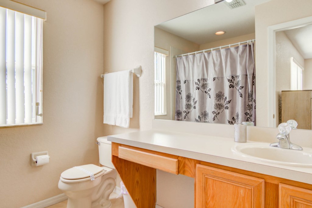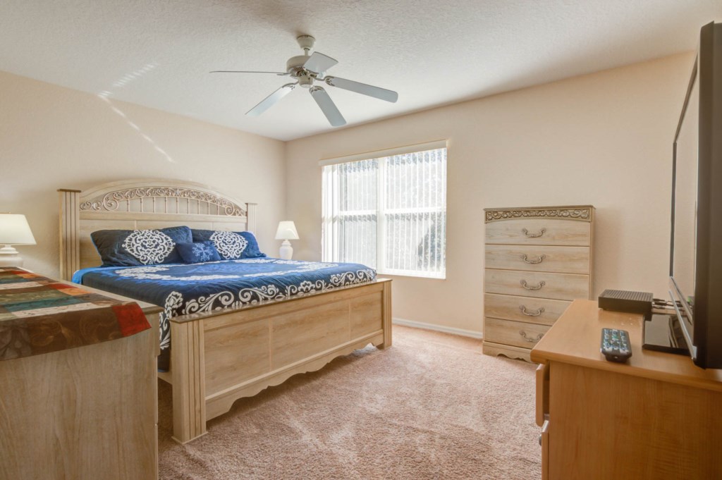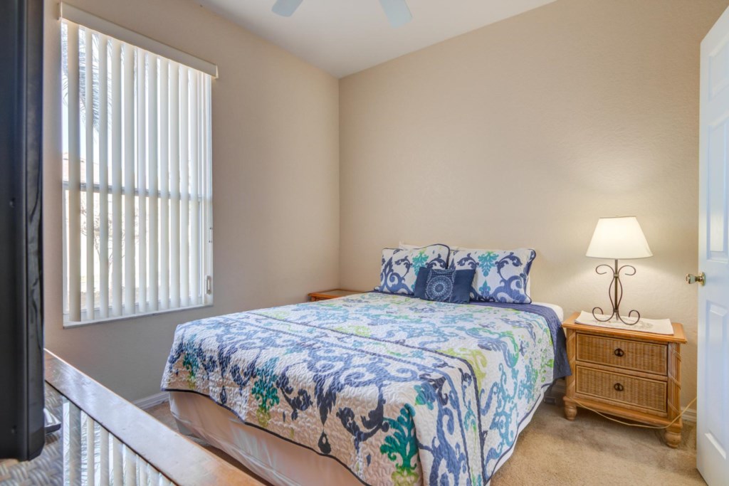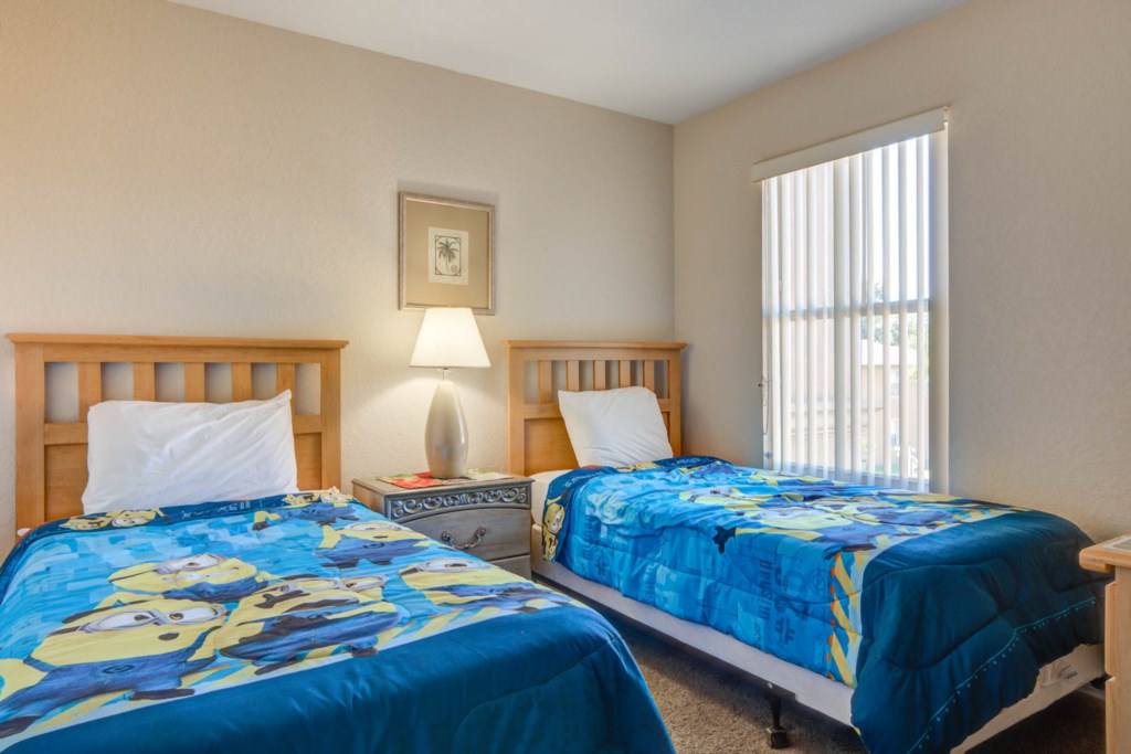This 4 Bedroom 3 Bathroom 2-Story Townhouse will comfortably sleep up to 8 people, so it's perfect for multiple familes or one large family. The master bedroom, which is upstairs, has a nice king size bed with private ensuite bathroom. The second bedroom, which is downstairs, has a comfortable queen size bed. There is a full size shared bathroom downstairs. The remaining two bedrooms are upstairs, with the master, and both have two twin size beds, which are sure to be a hit with the kids because of the character themed bedding.