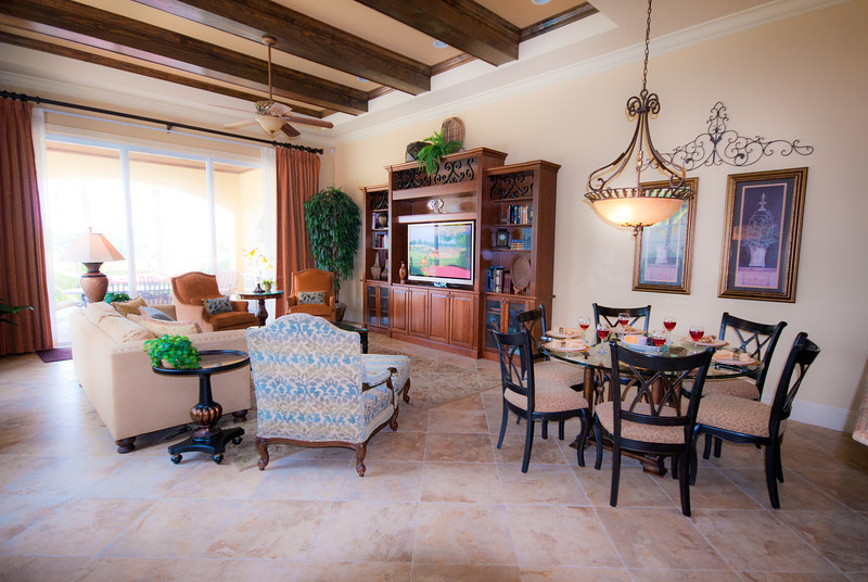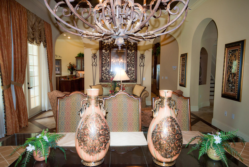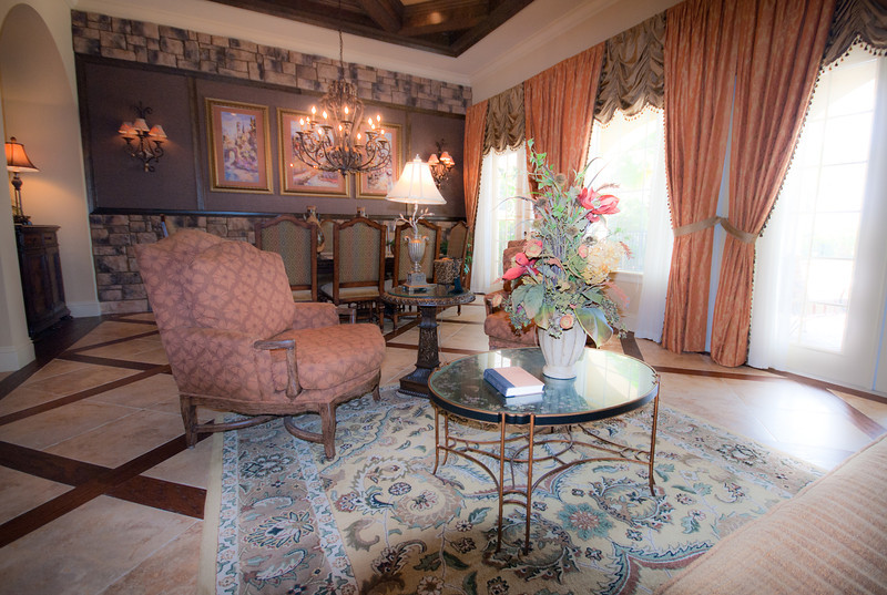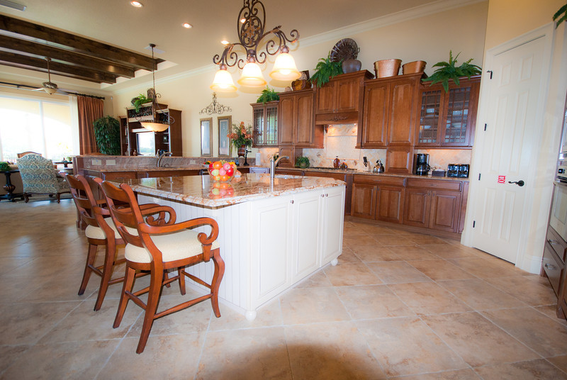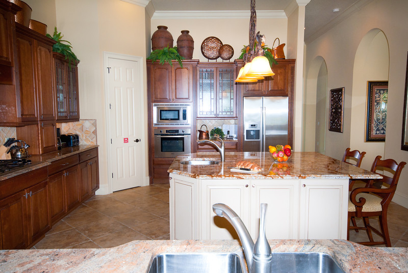 Custom built by one of Reunion's leading builders, Imperial Homes, this outstanding property will delight you from the minute you enter it's circular entrance hall with soaring ceiling a chandelier. Off the hallway is the formal seating and dining area with it's stone wall and amazing wood paneled ceiling, perfect for large family diners or that special celebration. A feature wall separates the huge open kitchen with large center island incorporating a second sink unit, granite counter tops, breakfast bar and full range of built in appliances. There is a second dining area within the family room that has comfortable seating and a large flat screen TV. Also located on ground floor is the second king-size master suite and a powder room.