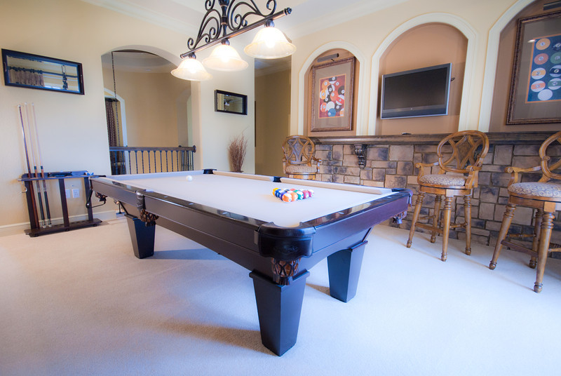On the first floor you will find the games area with pool table and wall mounted flat screen TV offering French doors that access one of the balconies overlooking the pool deck. There are two further bedroom suites, one having two twin beds and a veranda overlooking the front of the home and the other having a queen size bed with access onto the balcony overlooking the pool deck. There is a fifth bedroom which comfortably accommodates two additional twin beds. The laundry room is also situated off the games area. To the rear of the upstairs offering privacy and seclusion is the magnificent king-size master suite with seating area and huge bathroom also having a wall mounted TV. A private balcony overlooks the golf course for your morning coffee.