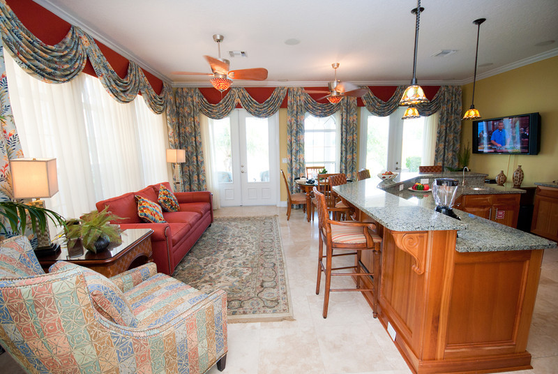 This fabulous home is nestled on a quiet spot just inside the Liberty Bluff section of the Reunion Resort commanding a spectacular view across the Arnold Palmer course, one of three PGA courses Reunion is home offers to the Reunion Grande Hotel. A custom built courtyard style home featuring many upgrades and complimented with exquisite furnishings and fabrics throughout.