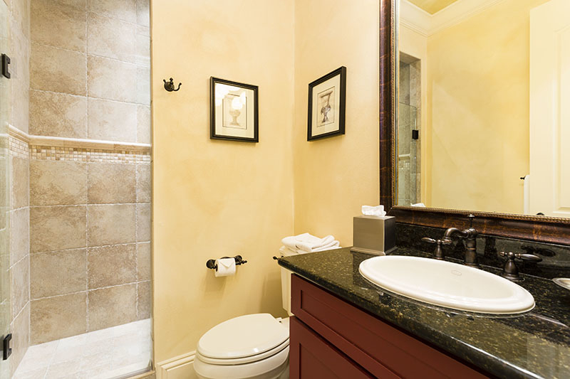 Central on the first floor is a great gathering/entertainment area which includes a large flat screen TV, comfortable seating, a bar with refrigeration, and access onto the rear furnished balcony. This area also offers a guest powder room. There are three further queen-size suites, one with rear balcony access which bathroom has a tub/shower combination. The second suite also has balcony access but includes a large walk in shower and the third suite also has a walk in shower. The fifth bedroom offers two twin beds with the bathroom with a walk in shower. All bedrooms include TV's and the home is wireless.