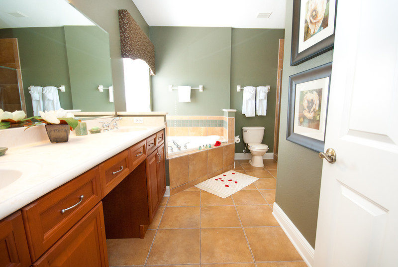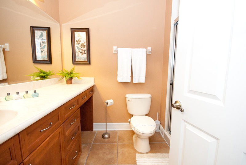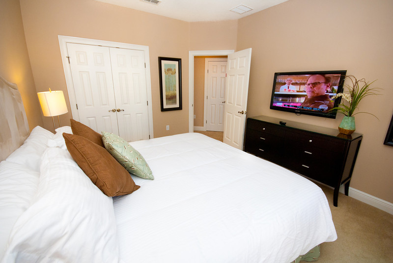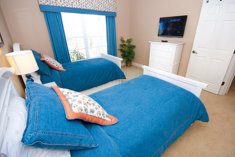 Upstairs to the rear of the home is the king-size master suite with TV and ensuite bathroom having twin vanities, oval tub and walk in shower, the private balcony offers a place for relaxation and fantastic golf views. The third bedroom is a king-size which offers a balcony overlooking the pool and fourth bedroom has two twin beds and a trundle, these two bedrooms share the family bathroom with walk in shower.