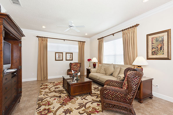 This beautiful home occupies a position on the main Boulevard and has the advantage of overlooking one of Reunions three PGA golf courses, the Arnold Palmer course. Further advantage is being within a stroll of the Reunion Grande hotel and other resort facilities.