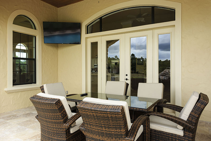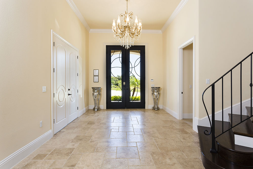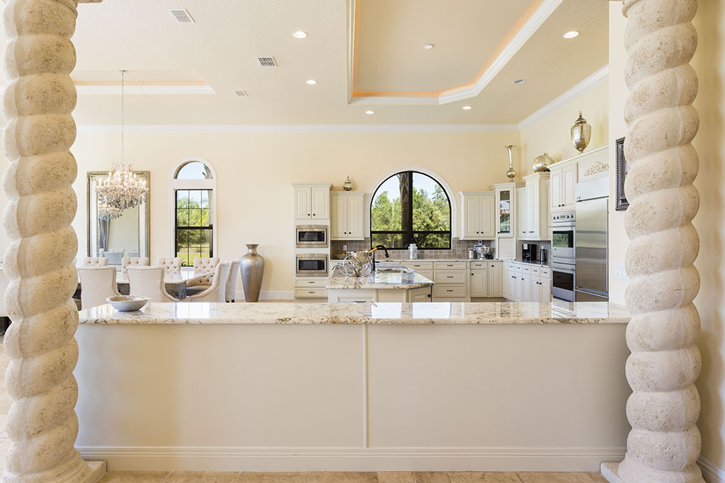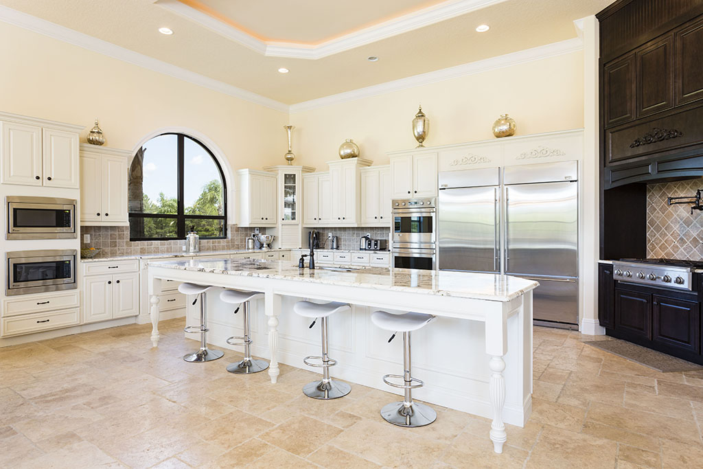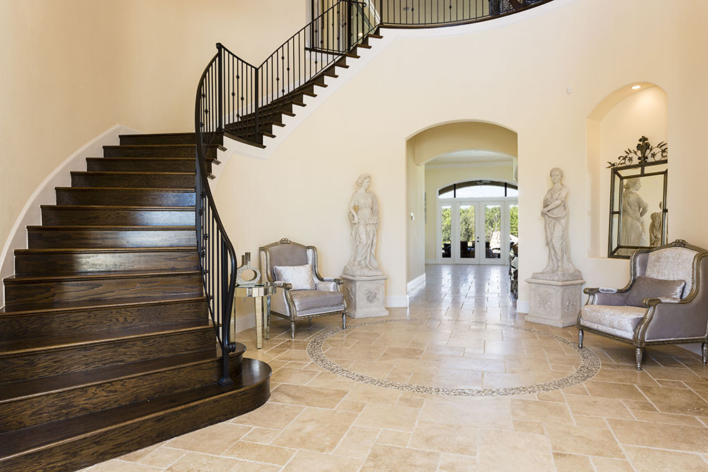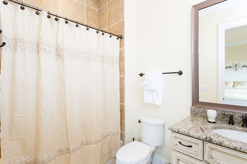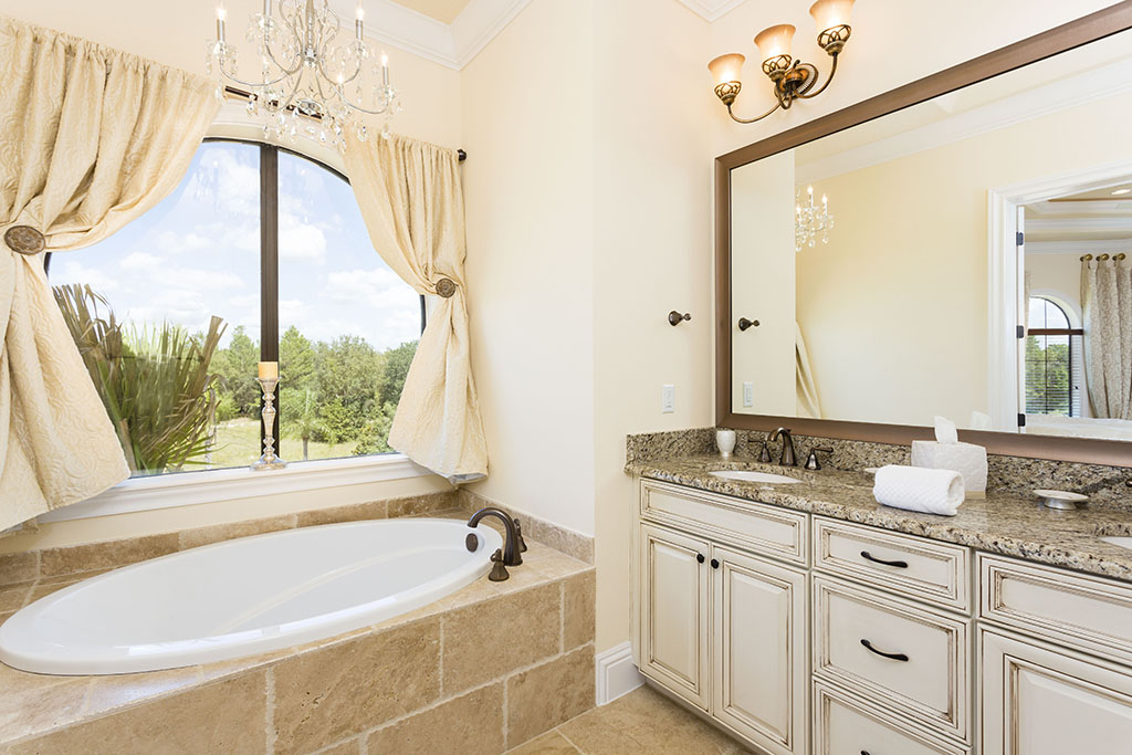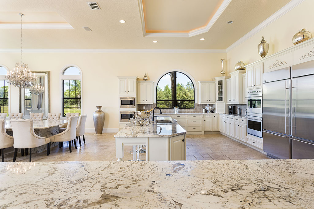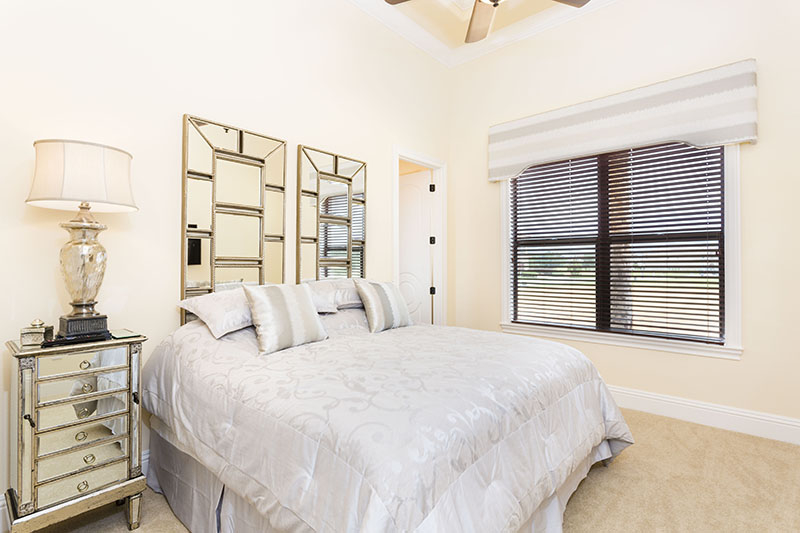 The beautiful facade of this home is only a glimpse of what awaits you. A soothing colour palate has been chosen to compliment each bedroom suite's individual decor with custom made window treatments and beautiful furnishings. Behind the huge metal crafted doors is a dramatic circular hallway with it's soaring ceiling and classical chandeliers, lighting, the sweeping staircase with it's wooden stairs, and wrought iron railing up to the gallery landing. The first master king-size suite is located on the ground floor at the front of the home. Is has wider door openings, lower vanity, making it the perfect location for those who are physically challenged, and the bedroom is flooded with natural light through it's bay windows. Its ensuite bathroom offers a garden tub, walk in shower and twin vanities. A fantastic movie theatre complete with one of the largest screens in any vacation home and seating for over 20 guests will provide hours of entertainment for adults and children alike. There are two more king-size bedrooms with both bathrooms having walk in showers, a guest powder room and fully equipped laundry room. The rear of the house provides the ultimate gathering area with the family area having over sized curved sofas and accent furniture, large wall mounted TV, and French doors allowing access outside. The gourmet kitchen with it's stainless steel double commercial appliances, huge center island with casual seating complimented by the stunning custom made 24 seat dining table in matching granite bordered by the large bay window with spectacular views of the pool, golf and conservation.