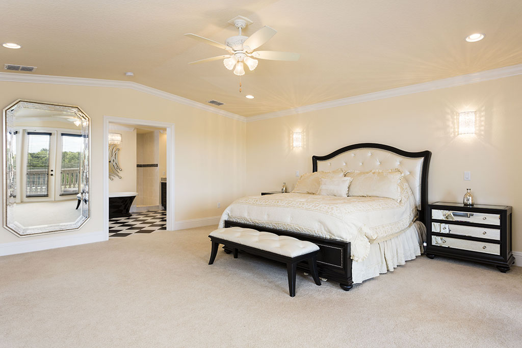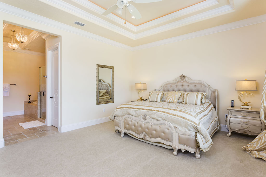 Upstairs is the perfect area for some fun and entertainment with a game of pool, competition on one of the games consoles, a table tennis tournament, or just taking in sport on one of the wall mounted TV's. There is ability for working out in the adjoining gym or simply enjoying the views from the spacious rear balcony after mixing a cocktail at the built in wet bar. Surrounding this area are eight bedrooms, all ensuite. The two king-size at the front are spacious and flooded in natural light. In the center of the home are four further bedroom suites, two are king size and two have two queen beds in each with all bathrooms having a walk in shower. To the rear are two more king-size suites with magnificent views of the golf course and conservation beyond from the numerous windows or the adjoining balcony. Each bathroom incorporates a tub, walk in shower, and vanities. A private staircase leads to the completely private master suite with it's bespoke bathroom having his and hers vanities, stand alone bath tub and wrap around shower complete with chandeliers. French doors lead onto the private balcony the perfect place for that evening cocktail and moments of quiet relaxation.