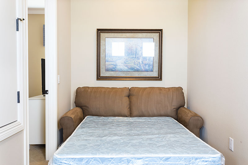 Upstairs to the rear of the home is the spacious king-size master suite with seating area, flat screen TV, and large bathroom having twin vanities, tub and walk in shower. The bedroom has access onto the private furnished balcony making it a perfect area for relaxation and enjoying the views. The third bedroom has two full size beds and an ensuite bathroom. On the landing area is a sofa bed.