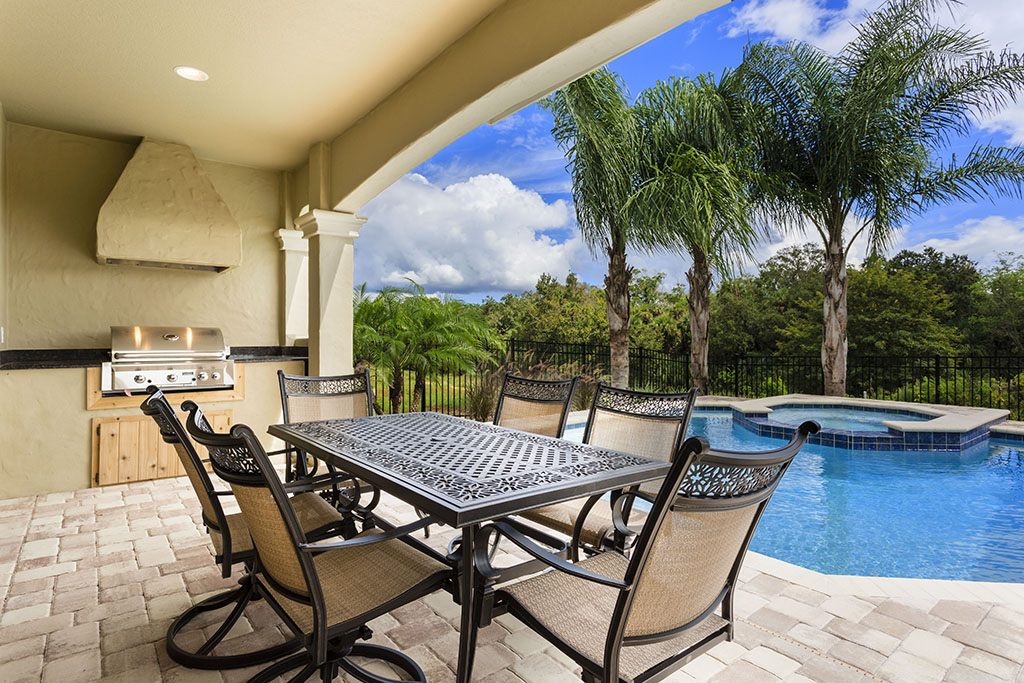 Outside will satisfy all your requirements with a covered dining area alongside the built in summer kitchen. This is the perfect space for al fresco dining or simply relaxing at the end of a busy day. A block paved deck area surrounds the heated pool and spa with lounging space to enjoy the Florida sunshine!