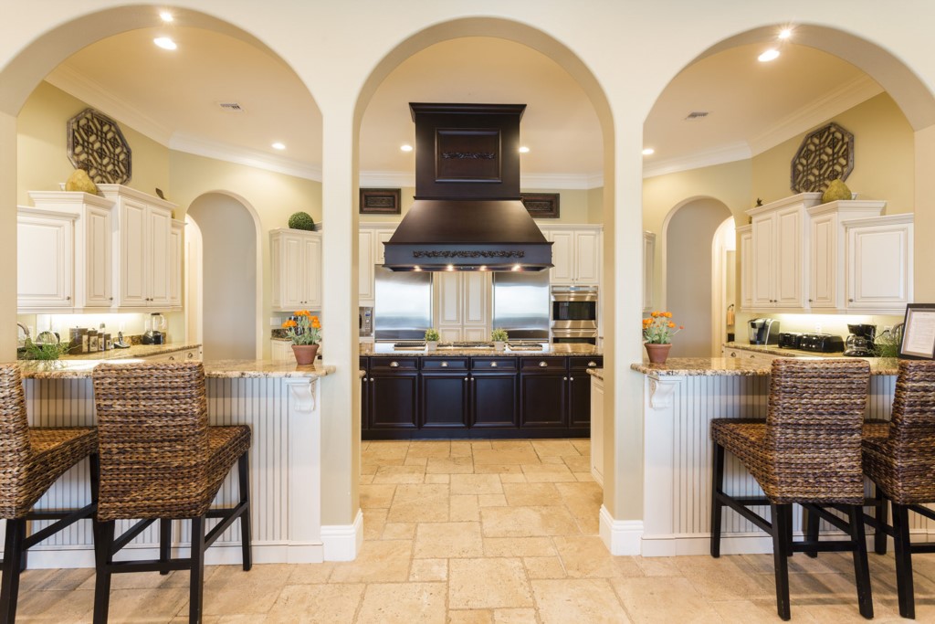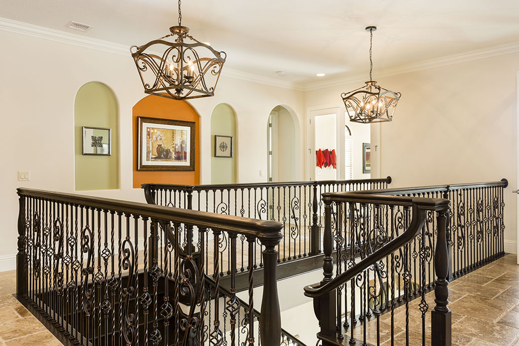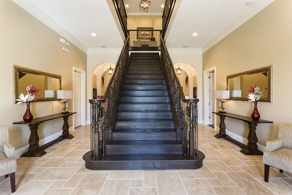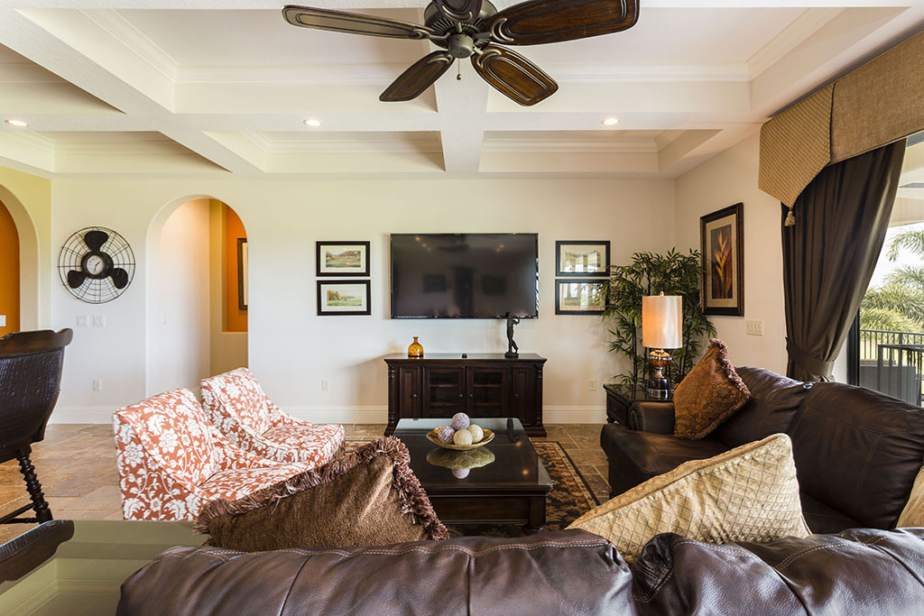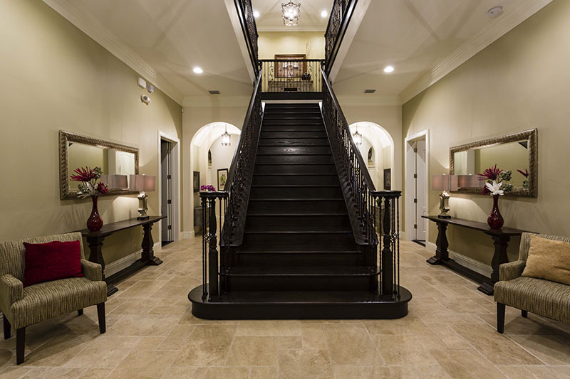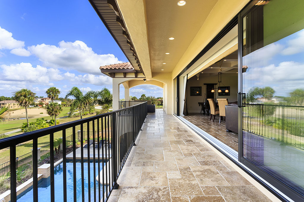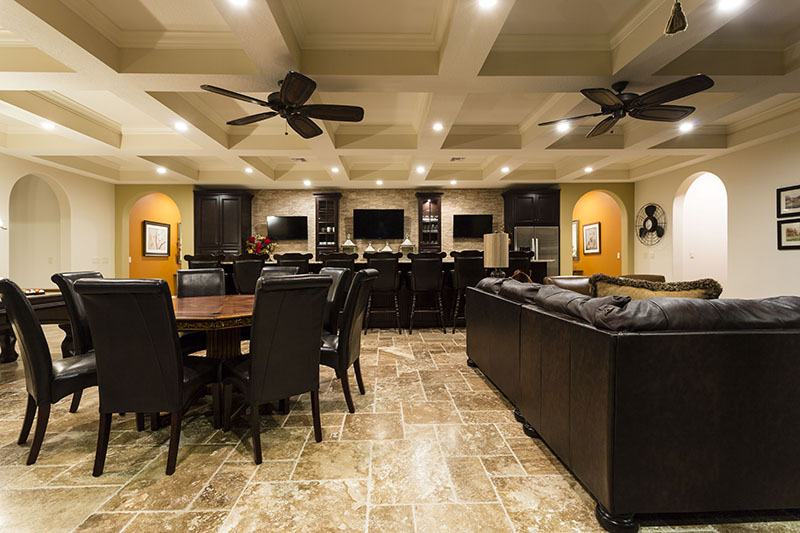 Whilst this luxurious custom built home looks impressive from the outside, your dream truly begins when you enter the home through the grand hallway with it's featured staircase, that is a central aspect highlighted by it's gallery landing. The games room is situated off the hallway and features an array of games that are guaranteed to keep the children occupied and entertained for hours and convenient to the purpose designed 'bunk' room that will be a haven for the children in the group, three sets of two full size bunks with a wall mounted TV and Playstation will be a haven for the younger children. If that wasn't enough, across the hallway is the games room offering airhockey, foosball, arcade game, wall mounted TV and games Xbox games console. There are four further kingsize bedrooms on the ground floor with ensuite bathrooms, two of them are king-size masters and located at the rear of the home, both offering access onto the pool deck, beautiful wooden floors, and bathrooms with twin vanities. One has an oval tub and walk in shower, and the other an over sized walk in shower with multiple shower heads. The open plan living area incorporates a separate powder room, a huge fitted kitchen complete with a long granite breakfast bar, two built in refrigerators, double oven, two dishwashers, and a large center island houses the commercial size hob. This truly is a gourmet kitchen with walk in pantry, two dishwashers, two refrigerators and an ice maker. The family seating area offers comfortable sofas from which to enjoy the large wall mounted TV and a formal dining area, a wall of glass doors open onto the covered lanai and overlooks the pool with golf course beyond.