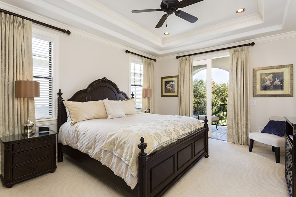 A king sized master suite is located to the rear upper floor of the home and includes a corner bath, twin vanities, a shower and access onto the golf view balcony.