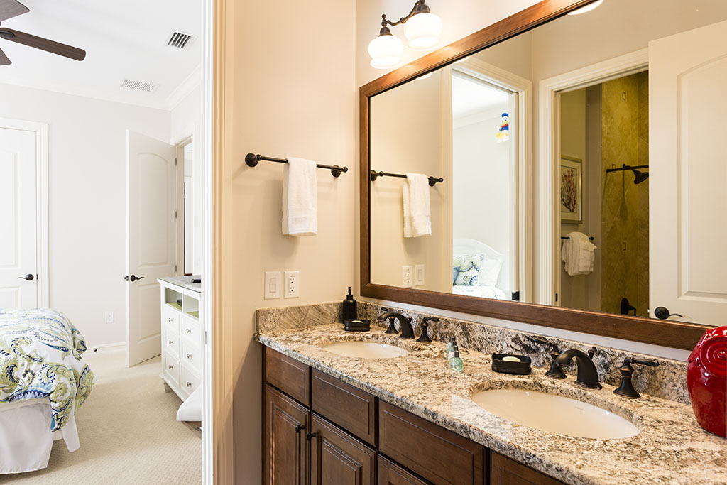 Also upstairs, two queen sized bedrooms share a Jack and Jill sized bathroom with shower and twin vanities.