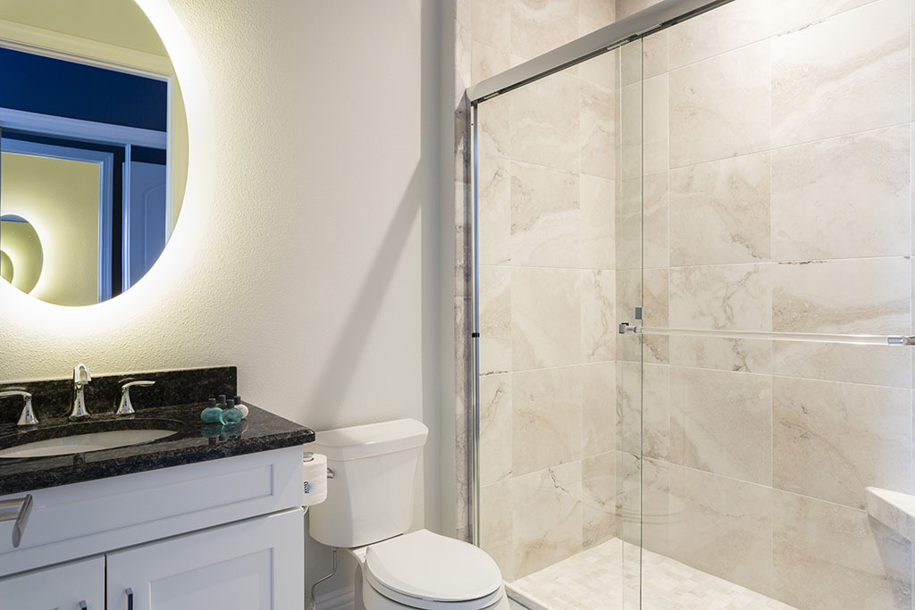 With sumptuous sofas in the large family living spaces, your guests will appreciate the air conditioned comfort as you keep the fabulous Orlando weather in clear view through the large glass doors and windows.