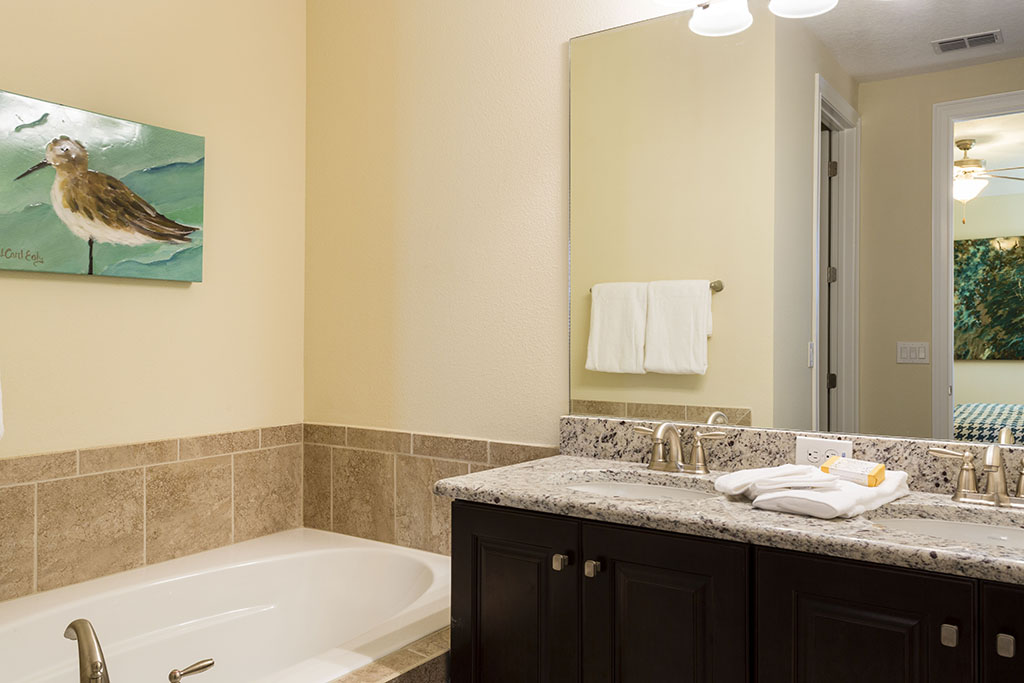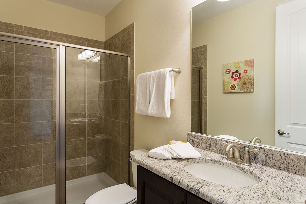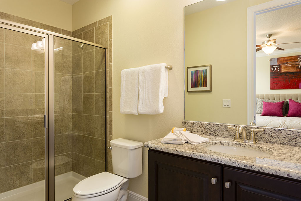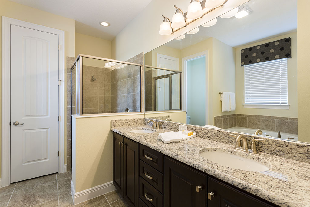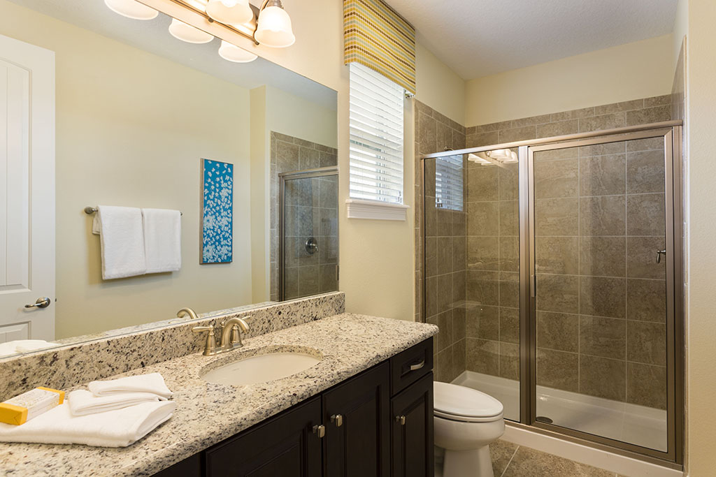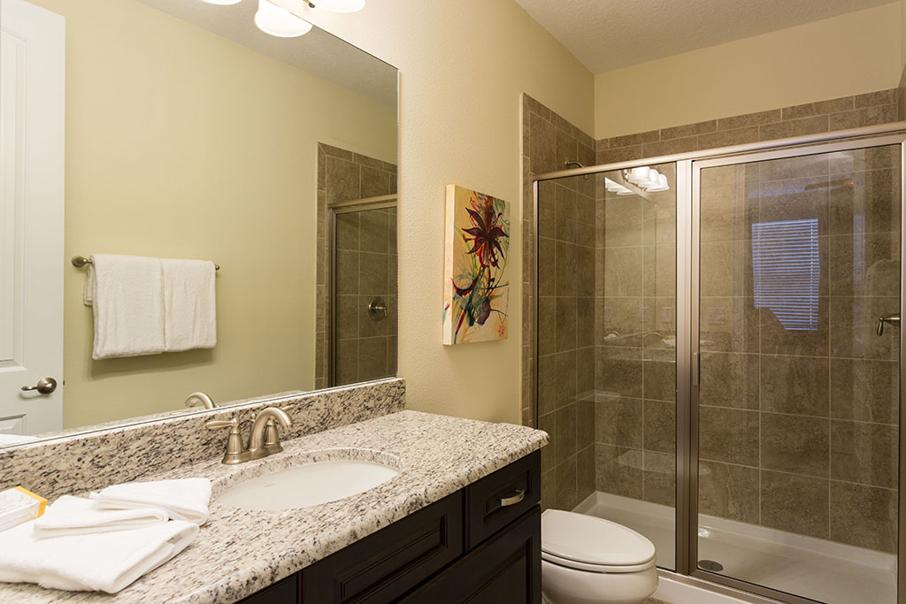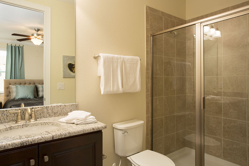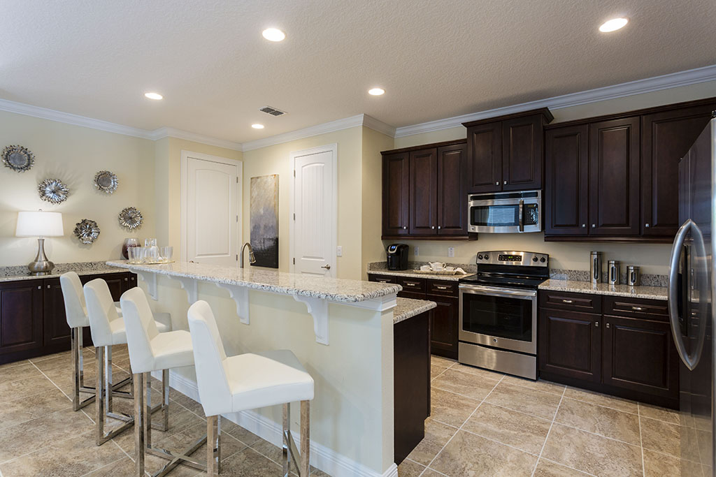 With a well equipped kitchen, including granite counter tops and stainless steel appliances, your guests can enjoy their favorite snacks and meals whenever you wish. (Large grocery stores are a short drive away from Reunion Resort!)
