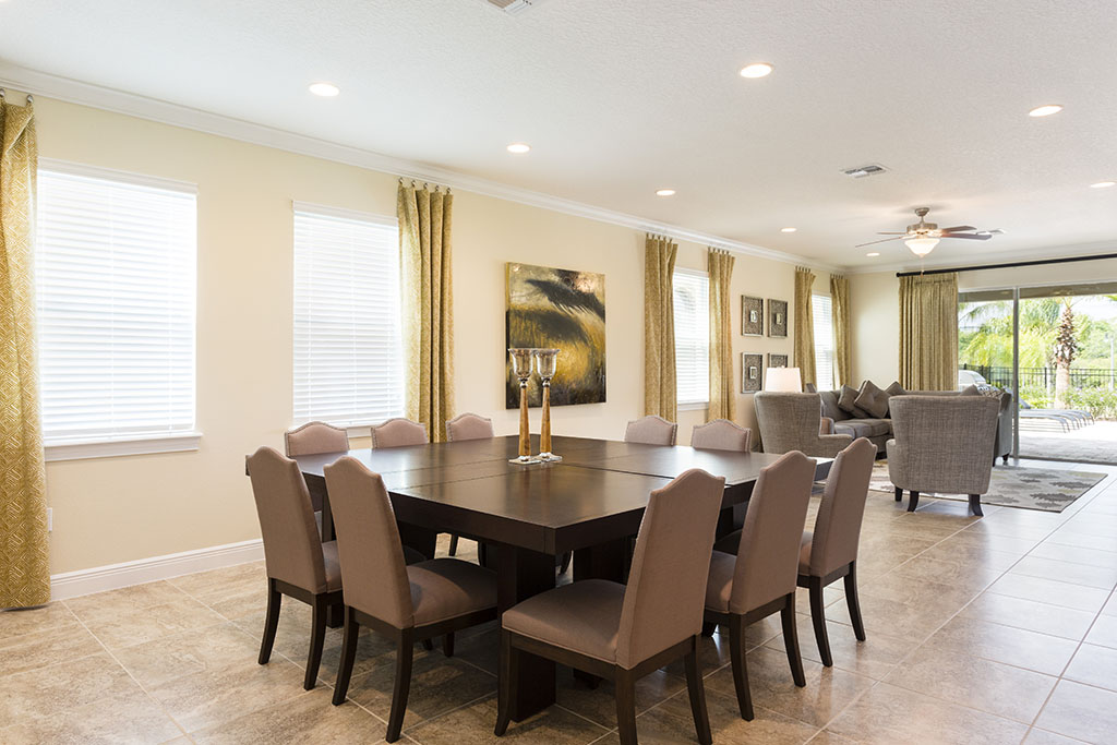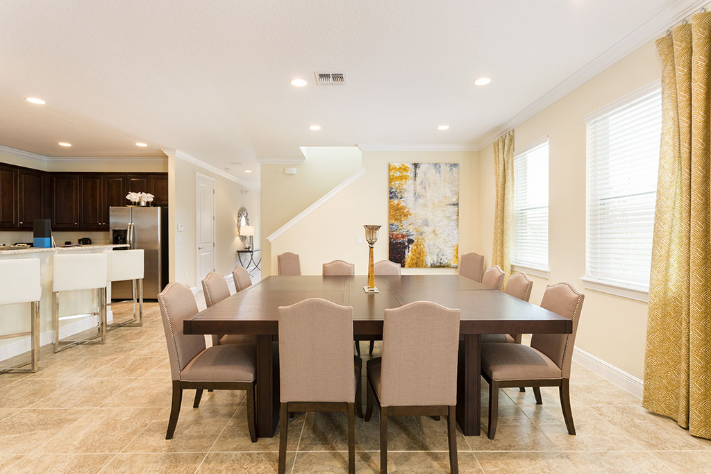 Just a few paces away, a large 10 seat dining table makes a perfect spot for family dinners, as you chat about the day's adventures in the theme parks!
