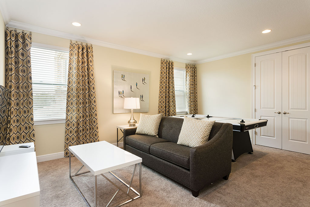 Upstairs, the loft area provides a second social gathering area, with comfortable seating, games area and flat screen TV.
