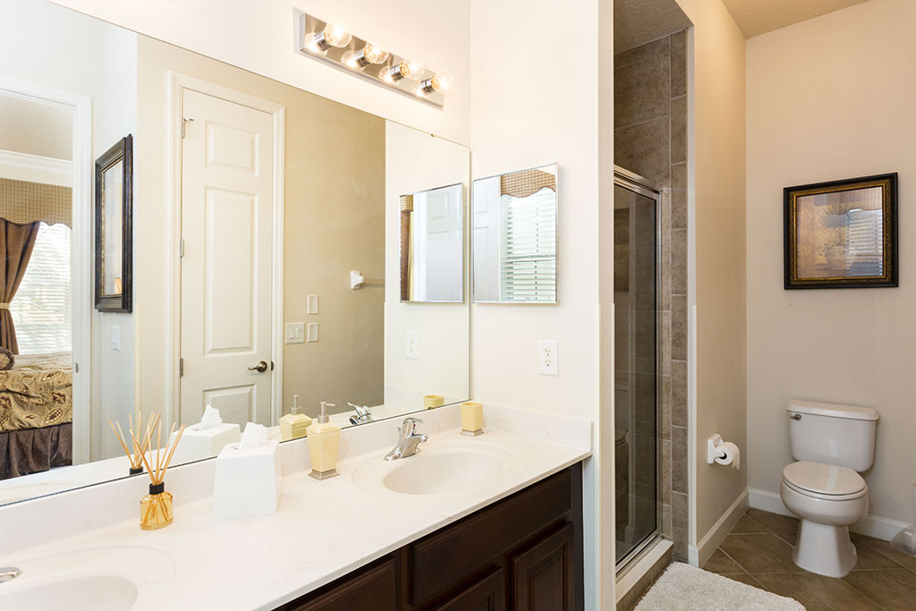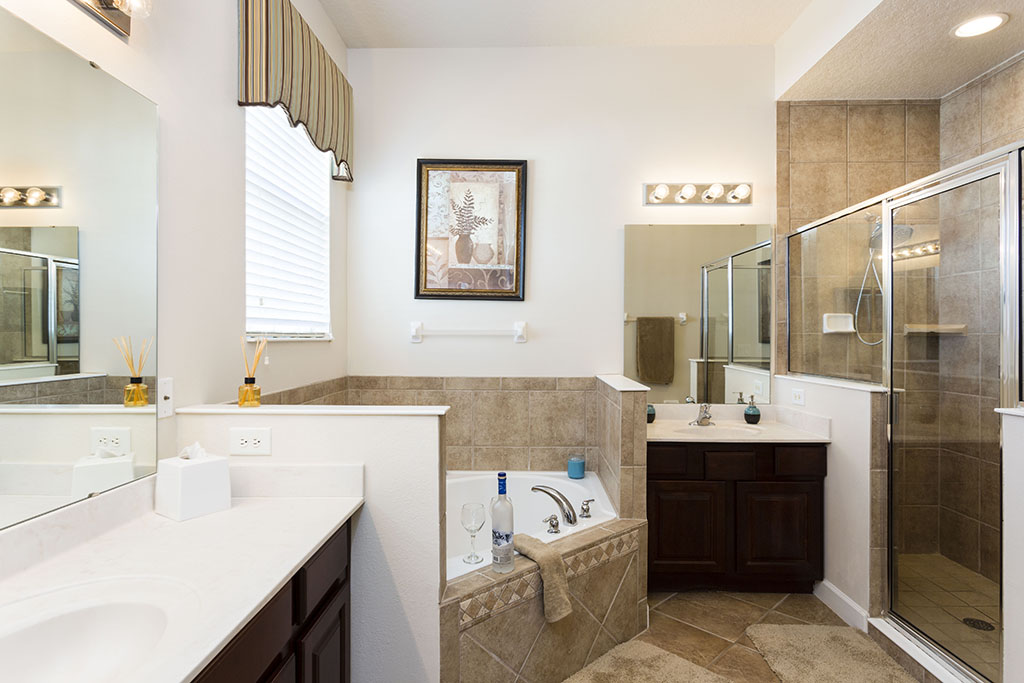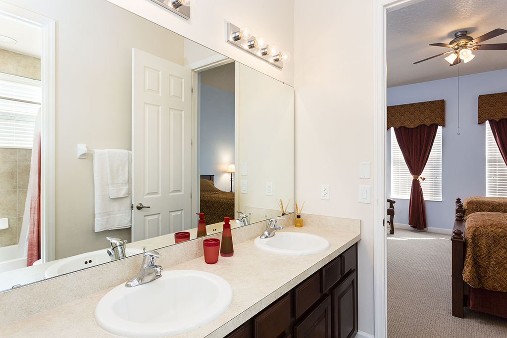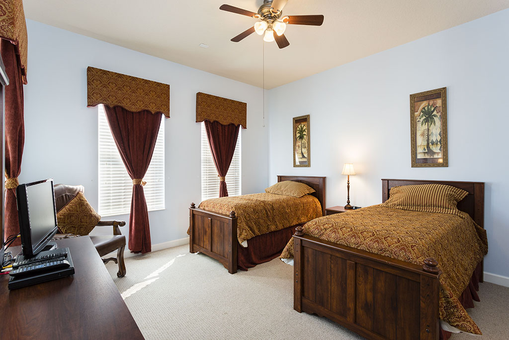 Upstairs, two further bedrooms each provide two twin beds, offering space for up to 8 guests to enjoy this amazing luxury pool home on Reunion Resort!