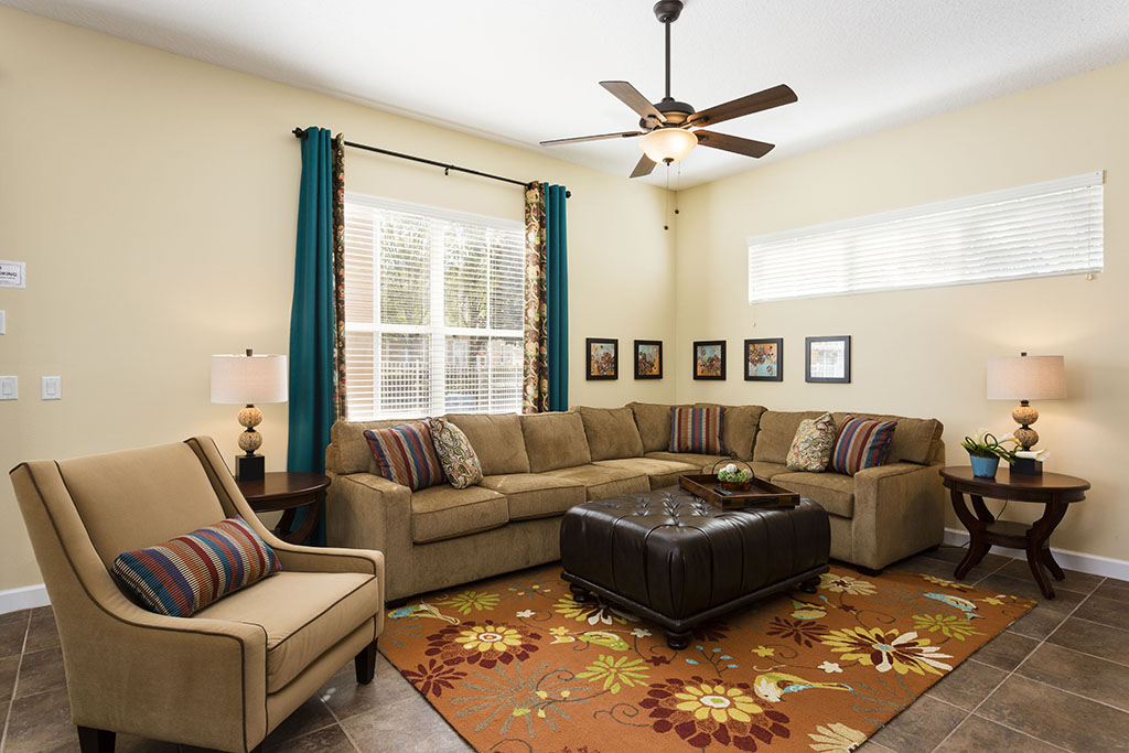 With a TV area with sectional sofa, a fully equipped kitchen and an 8 seat dining area, plus two seat breakfast bar, your guests are able to relax in style at the end of a busy day at the theme parks.