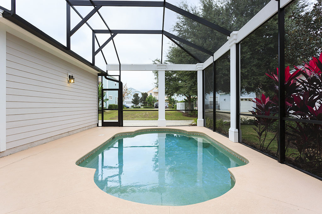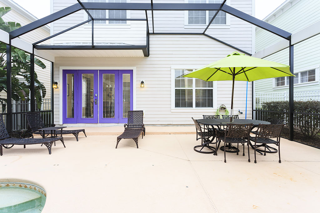 Perfect for relaxing days in the Orlando sunshine, the screened private pool deck offers a perfect combination of sun drenched and shaded spots throughout the day. Ideal for families that have sun worshiping parents or shade needing kids at play!