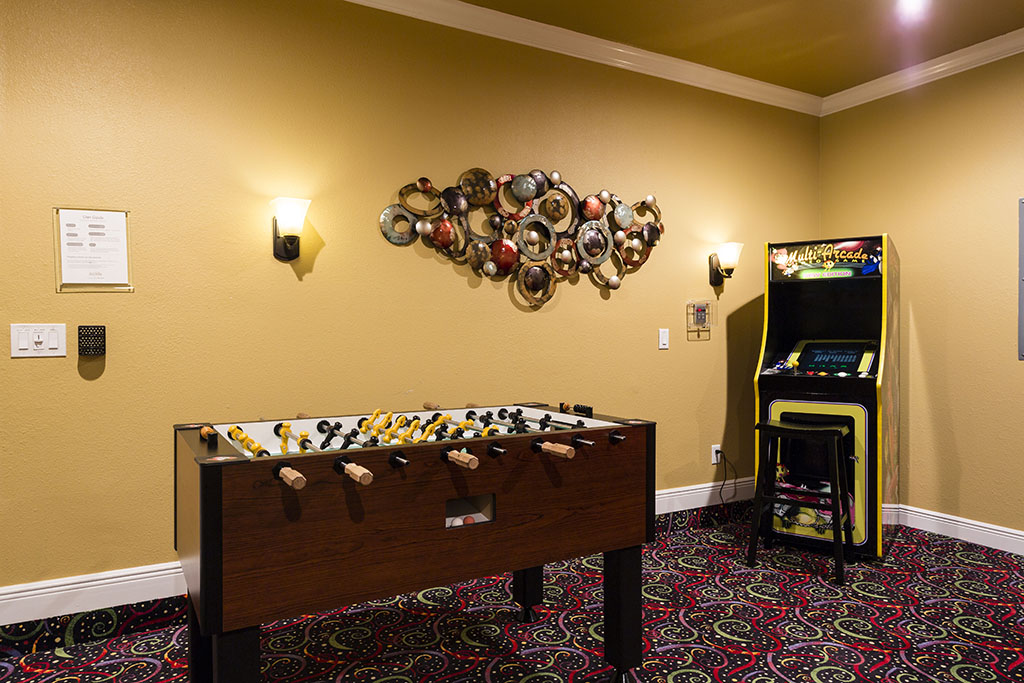 - Games area with foosball and ‘coinless’ arcade cabinet with 60 classic games